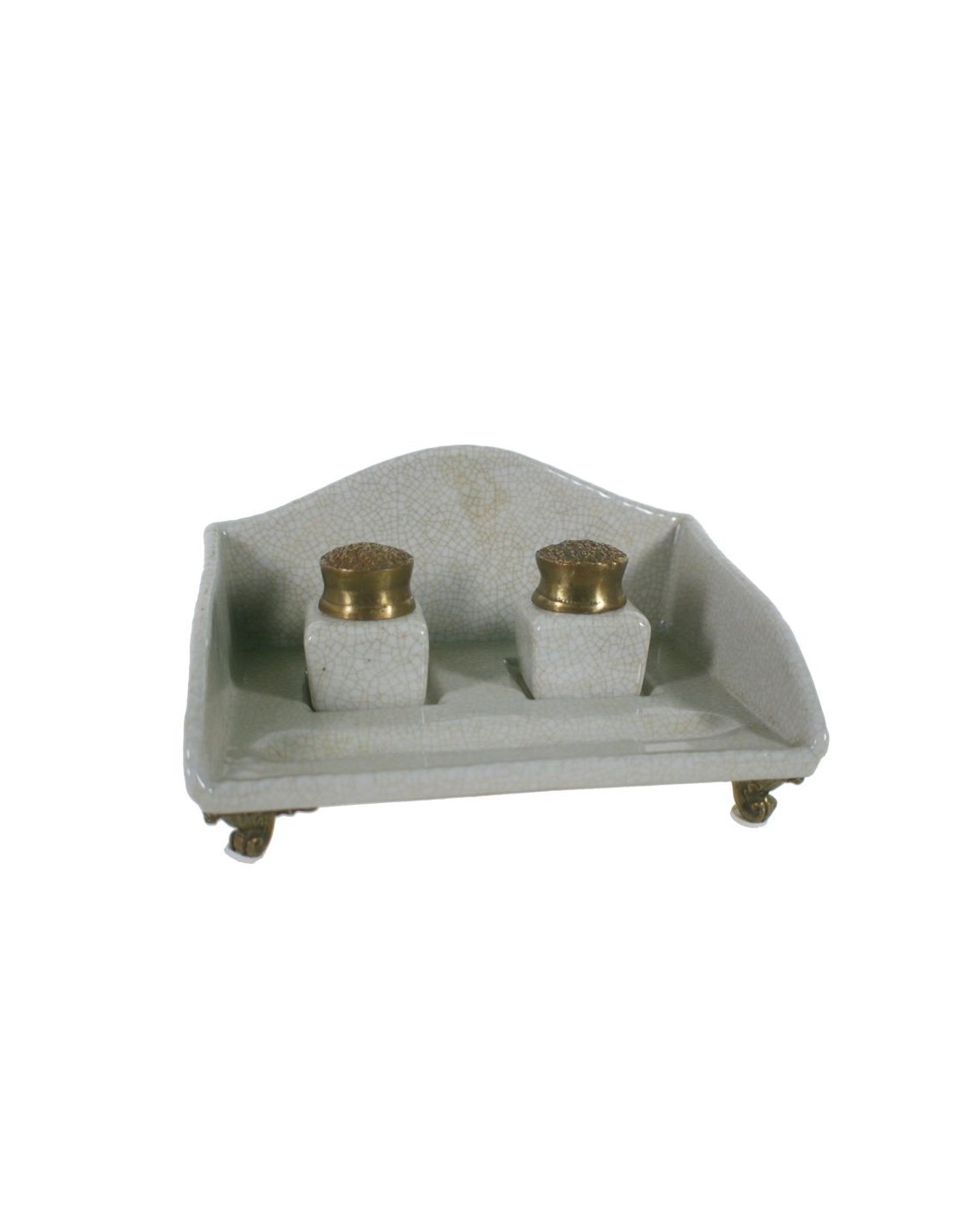 Scribe en céramique avec 2 encriers et pieds en métal. Mesures: 10x19x14 cm.