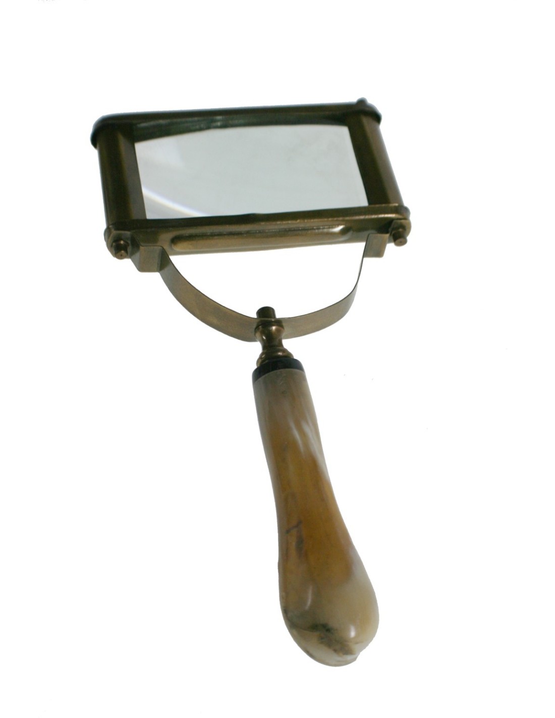 Grande loupe rectangulaire en métal, finition en vieil or. Idéal pour cadeau.