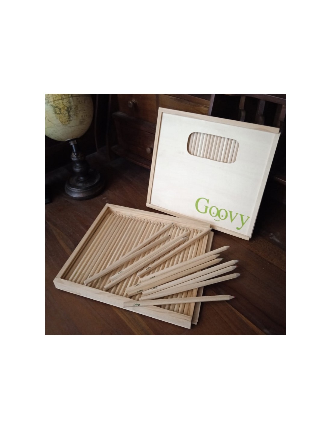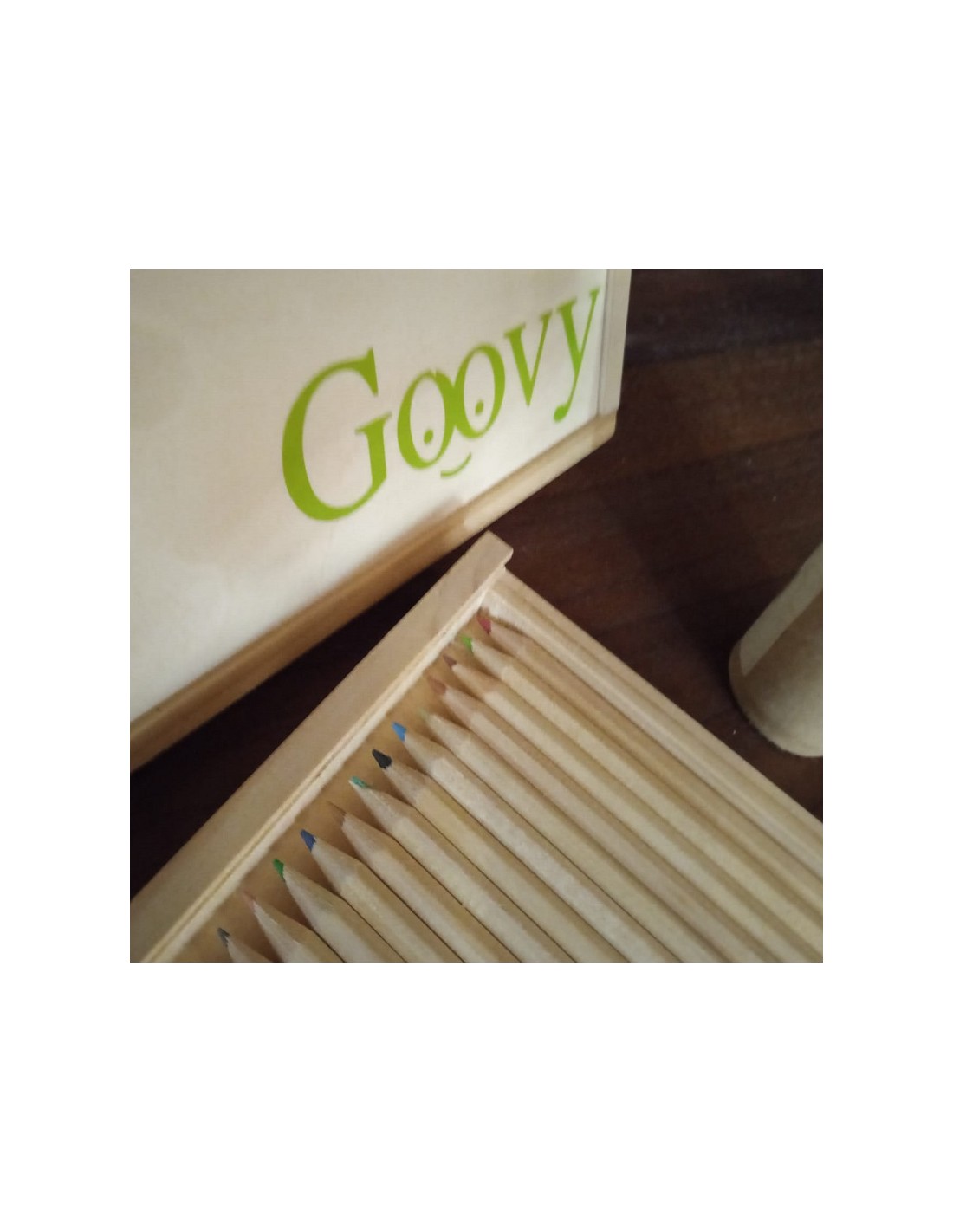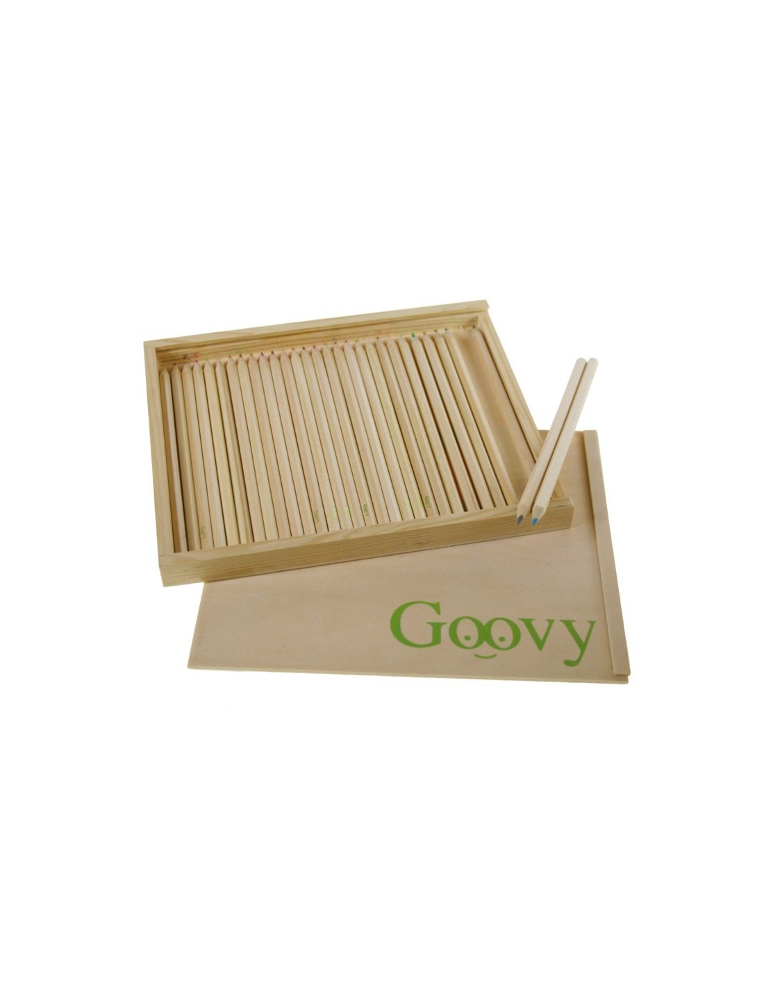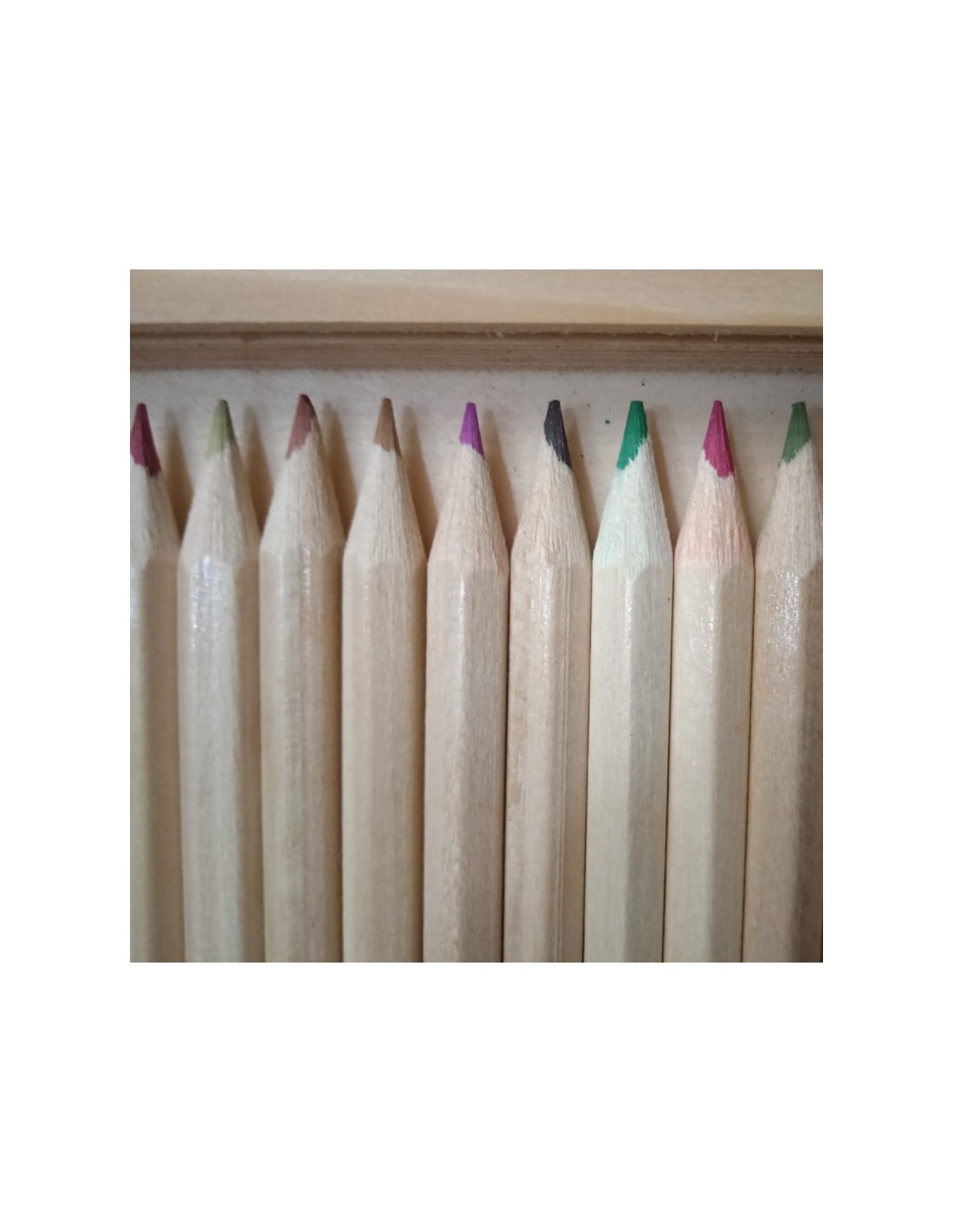 Mallette en bois contenant 30 crayons de couleur, parfaite pour dessiner et colorier, en les gardant toujours organisés et prêts à l'emploi.