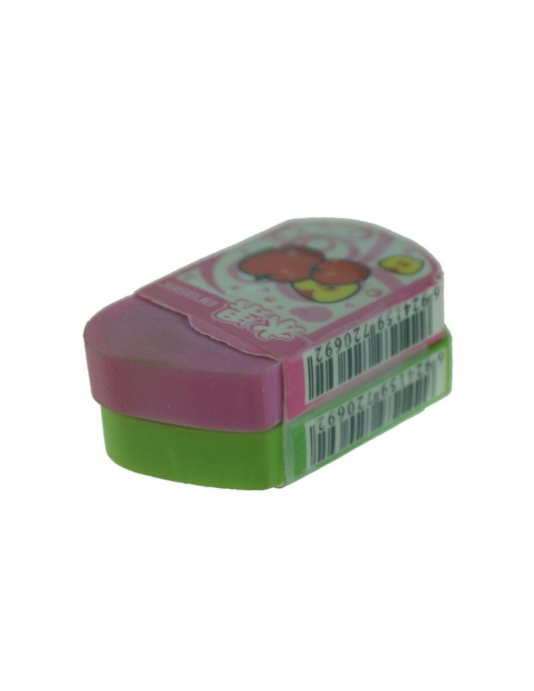 Ensemble de 2 gommes Supprimez la forme d'écriture des enfants de fruits en vert et rose. Mesures Unité: 4x2,5 cm.
