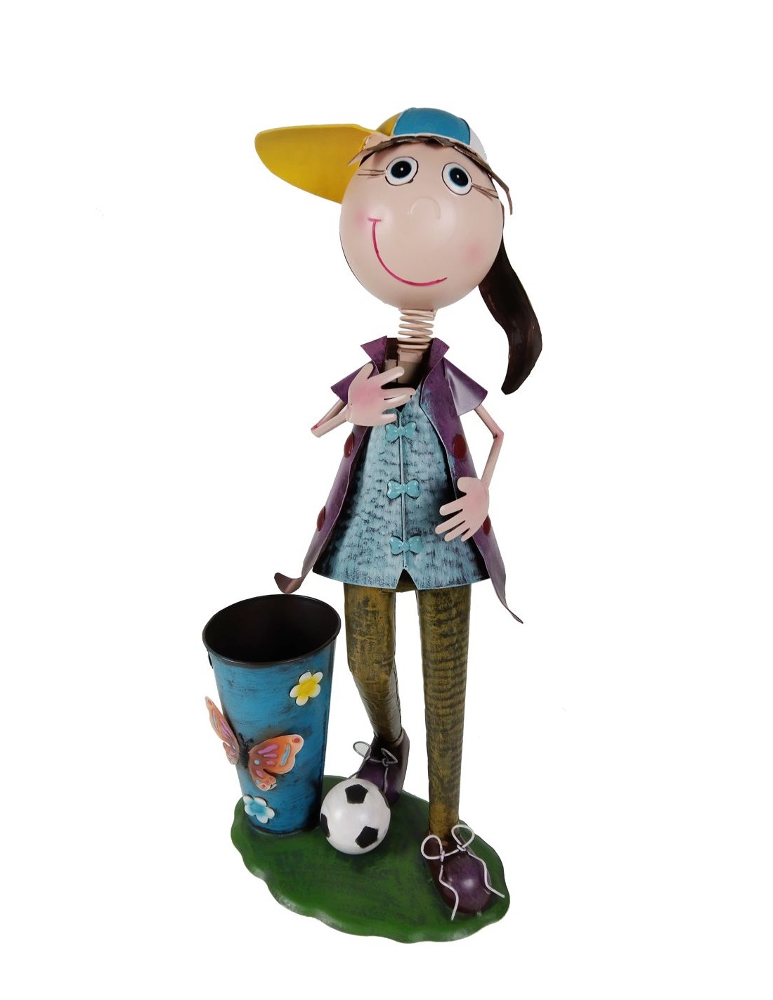 Garçon avec casquette et boule avec pot de fleurs, figurine décorative pour jardin, balcon ou terrasse.Dimensions : 76x34x26 cm.