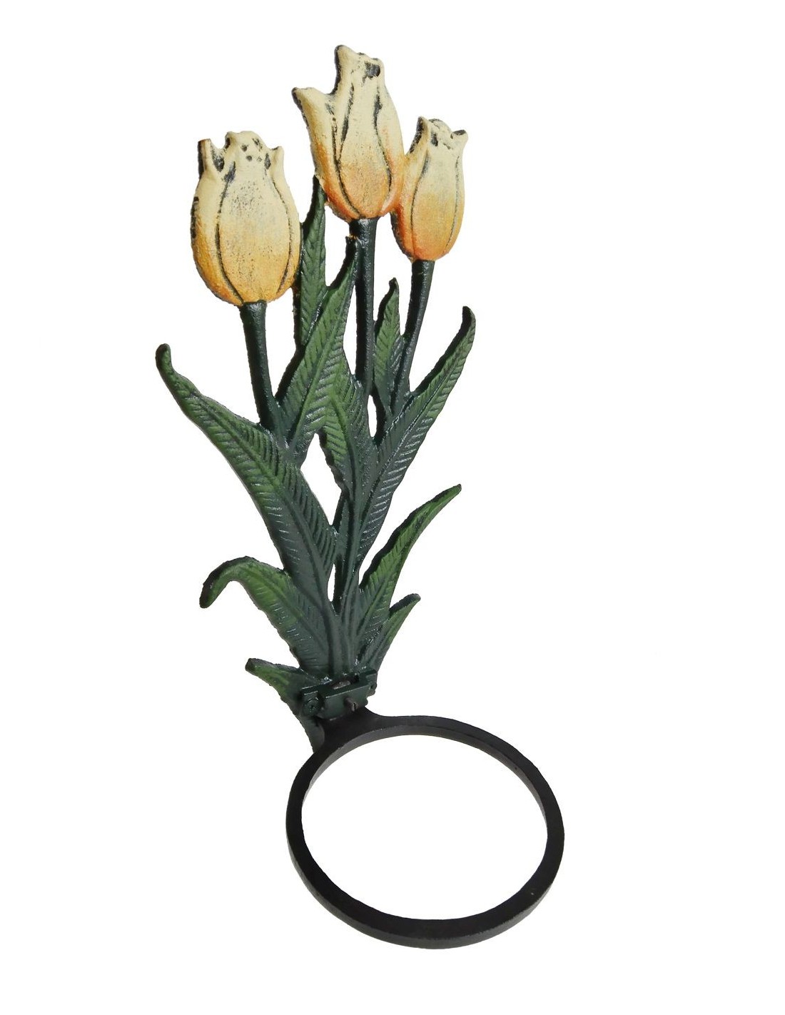 Porte-pot de fleur en fer avec décoration de tulipe pour une plante de décoration de jardin. Dimensions : 34x17x17 cm.