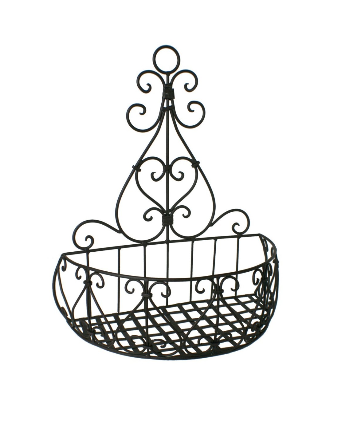 Porte-pot de fleurs mural en métal sur grille pour plantes, décoration de jardin de style vintage.Dimensions : 41x30x14 cm.