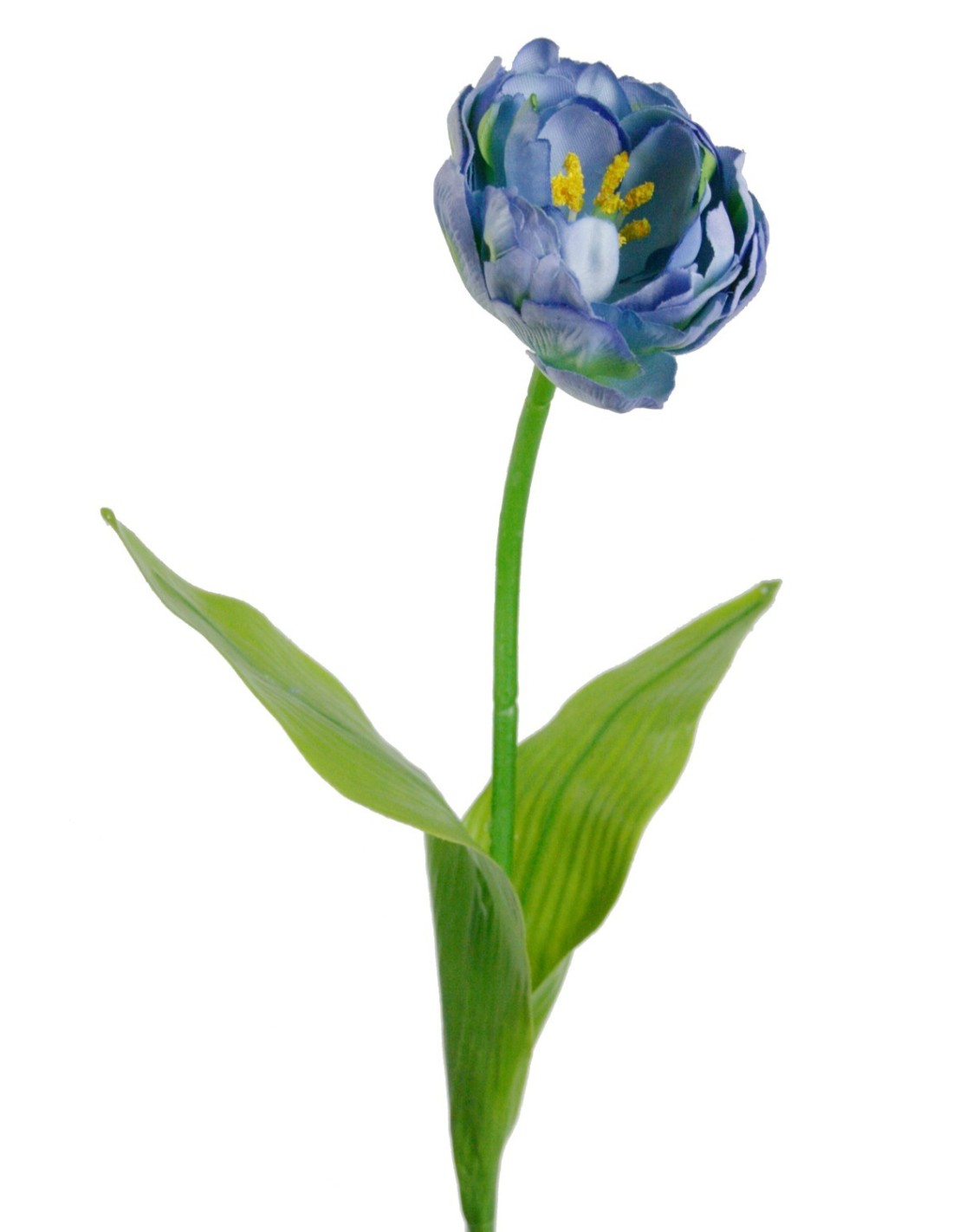 Fleur de tulipe artificielle de couleur bleue pétales de tissu décoration de la maison. Dimensions : 46x6x6cm.
