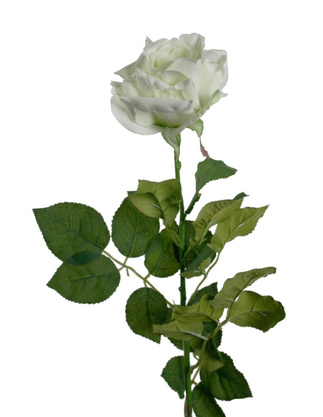 Fleur de rose artificielle blanche avec pétales en tissu et ornement de décoration à longue tige. Dimensions : 76x8x8cm.