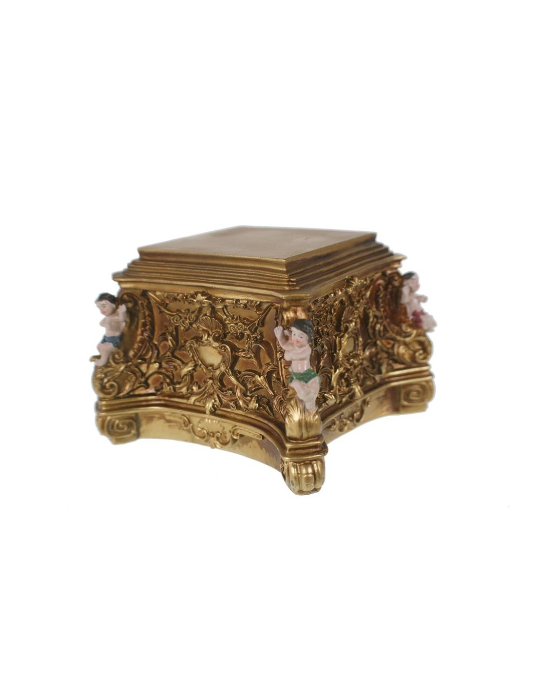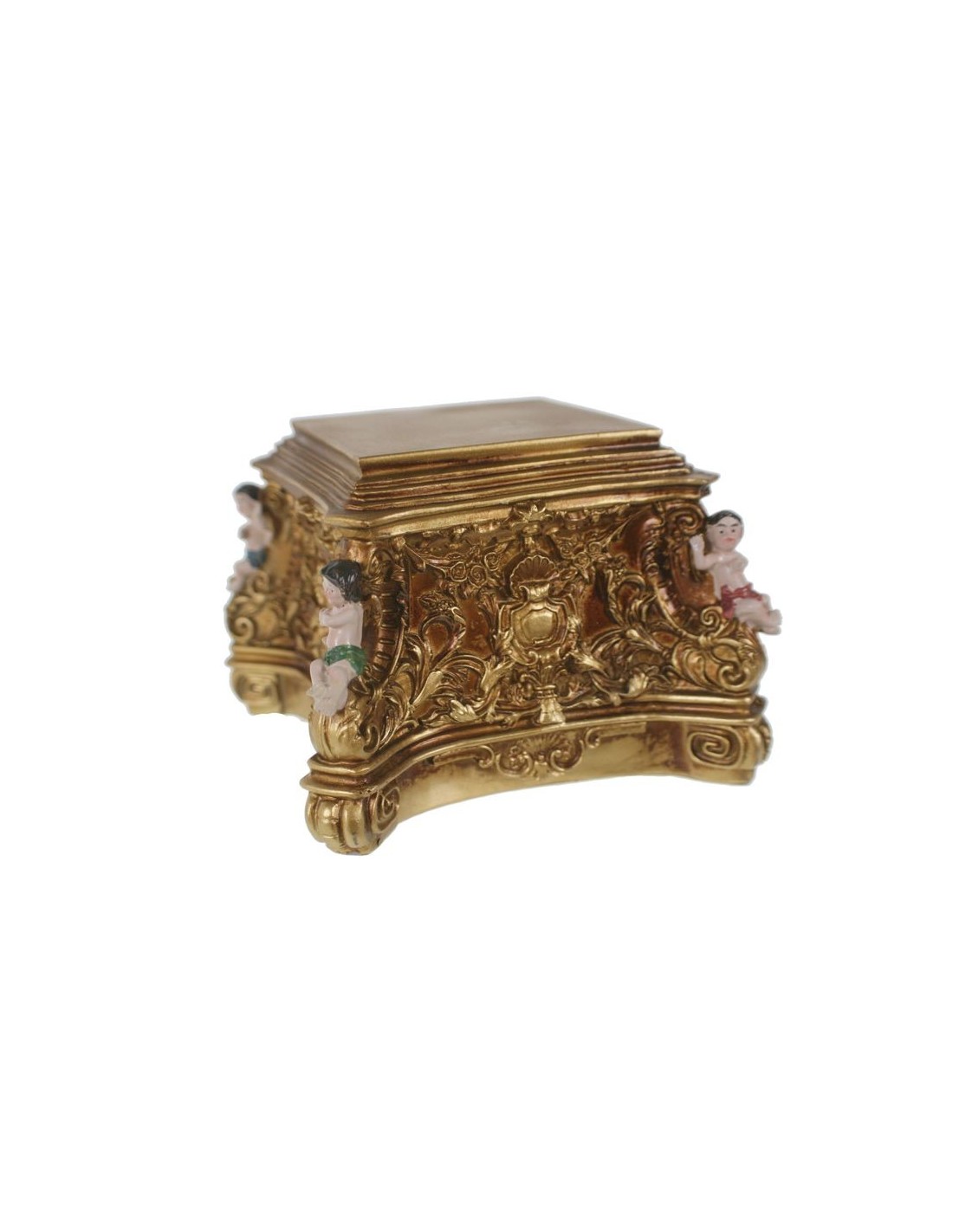 Corbeau de bureau patiné or à décor d'anges. Mesures: 10x12x12 cm.