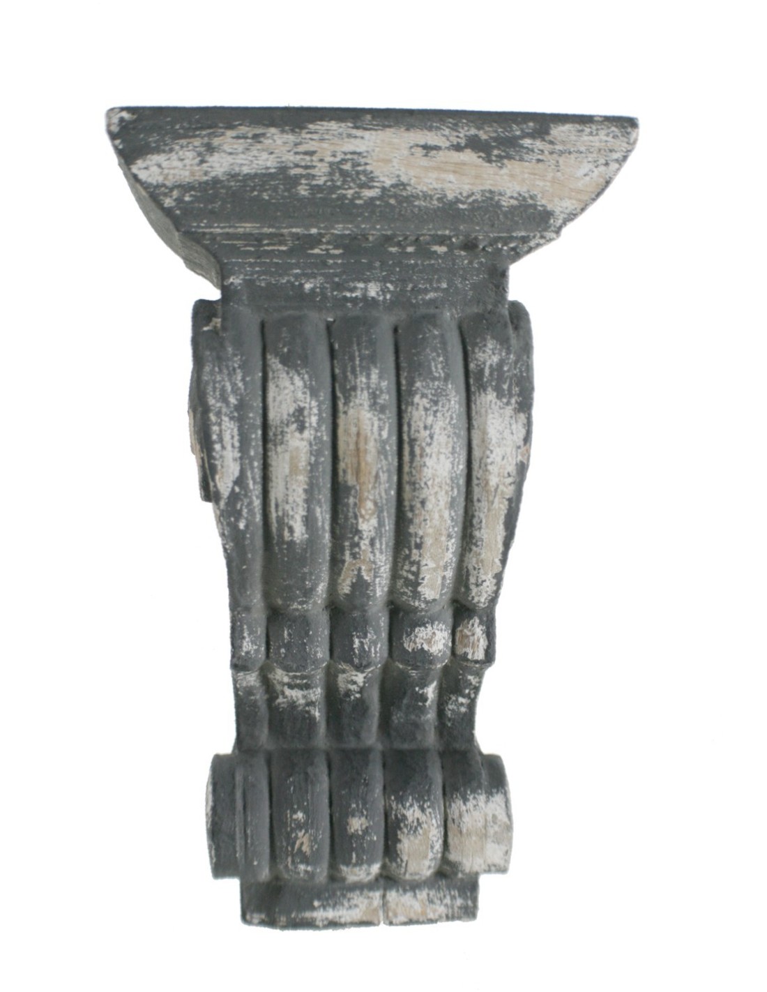 Support mural en bois avec sculpture en gris vieilli dans un style vintage rustique pour la décoration et l'exposition. Cette parenthèse est un article de bonne fin obtic.