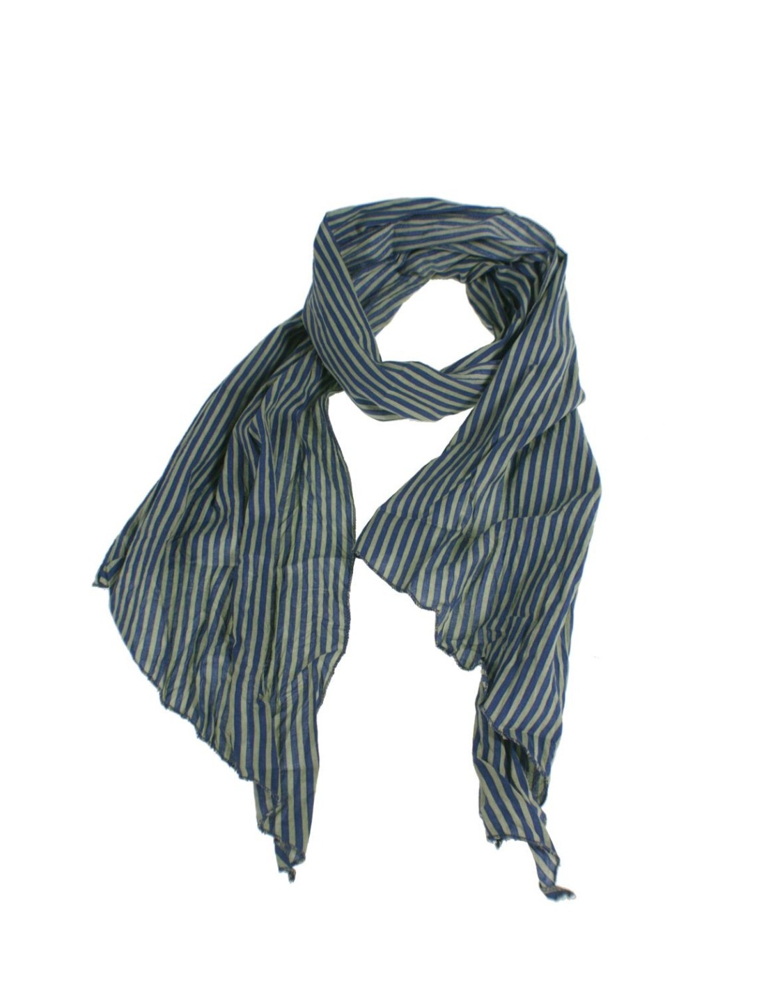 Collier molle Tissu Foulard Style de base rayé en bleu et gris pour la mode femme cadeau. Mesures: 180x40 cm.