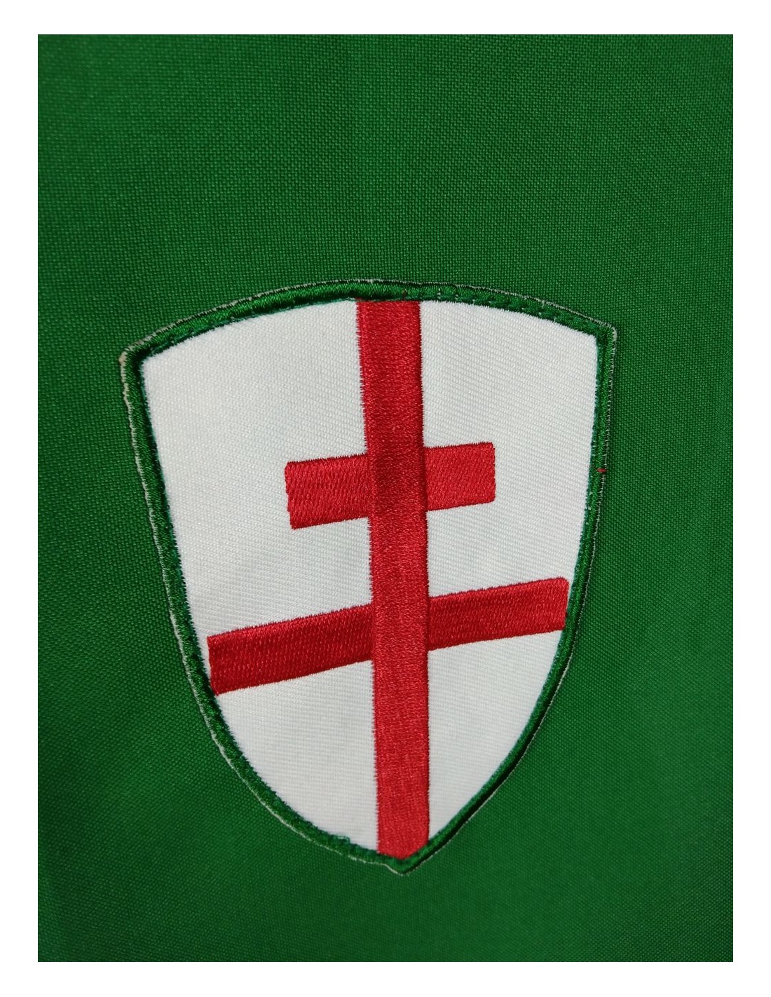 Plastron de harnais de vêtements verts médiévaux avec complément d'insignes pour les costumes de jeux.Mensurations:6/12 ans.