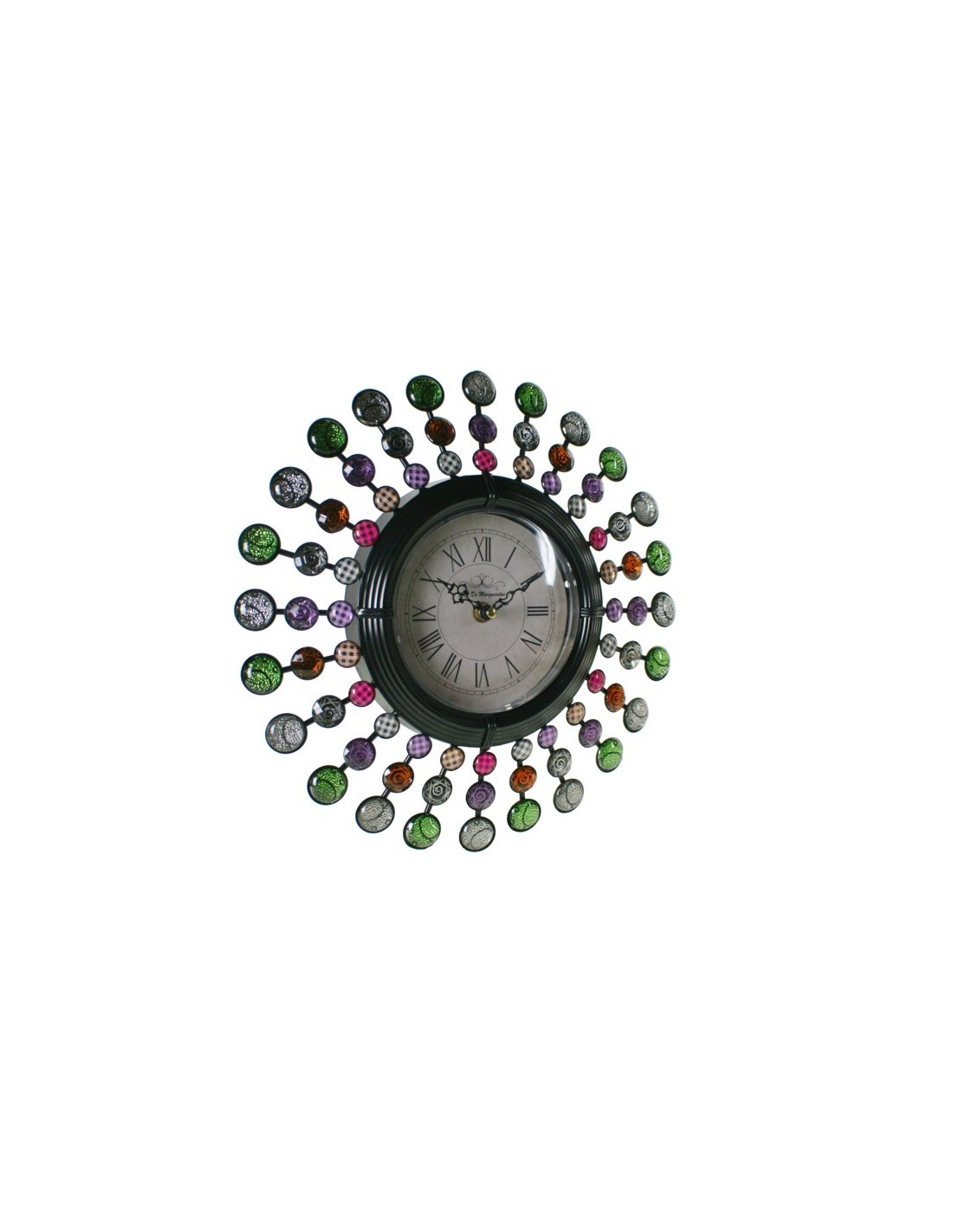 Horloge murale ronde en métal avec applications en cristal coloré à pois décor à la maison de style hippie. Mesures: Ø33x5 cm.