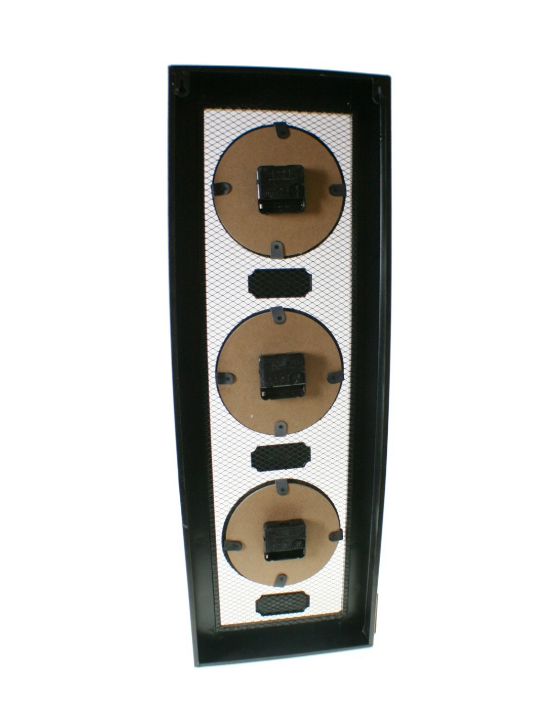 Horloge murale décorative originale et géniale pour votre pièce préférée, Les horloges murales sont parfaites pour compléter la décoration de votre maison, Cette horloge est de trois fuseaux horaires différents en noir métallique dans un style industriel qui se combinera avec n'importe quelle décoration. Cela aura l'air très bien dans le hall. Impossible de ne pas être à l'heure à tous vos rendez-vous.