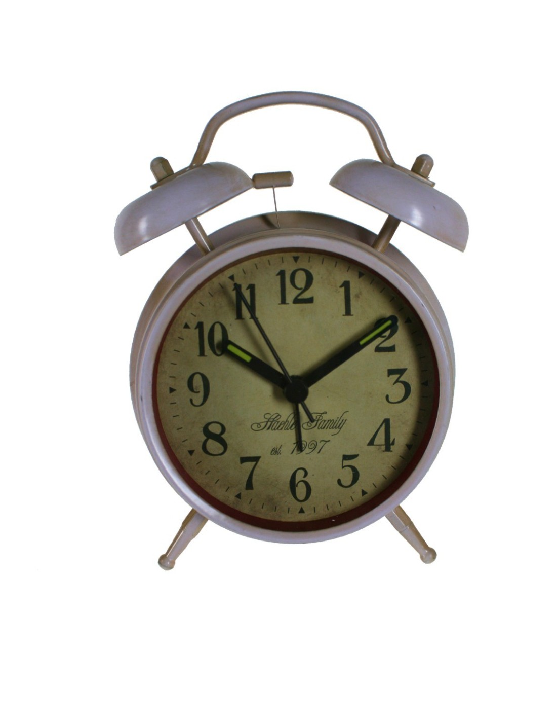 Réveil analogique de bureau blanc de style classique pour la décoration de la maison vintage. Mesures: 16x12x5,5 cm.