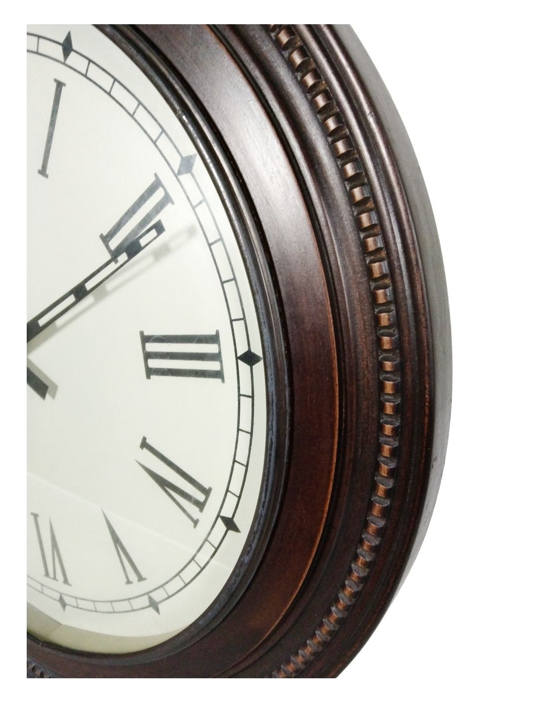 Grande horloge murale très décorative en forme de bois sculpté rond avec chiffres romains et cadran central en verre. Apportez cette touche unique et distinguée à la pièce de votre maison avec cette horloge murale car c'est une pièce décorative qui donnera de la personnalité. Unité unique.