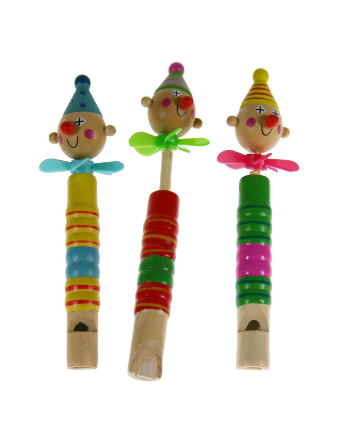 Une charmante flûte en bois naturel, savamment vernie et décorée d'une tête de clown et de joyeuses hélices en plastique. Ce jouet musical, conçu spécialement pour les enfants.