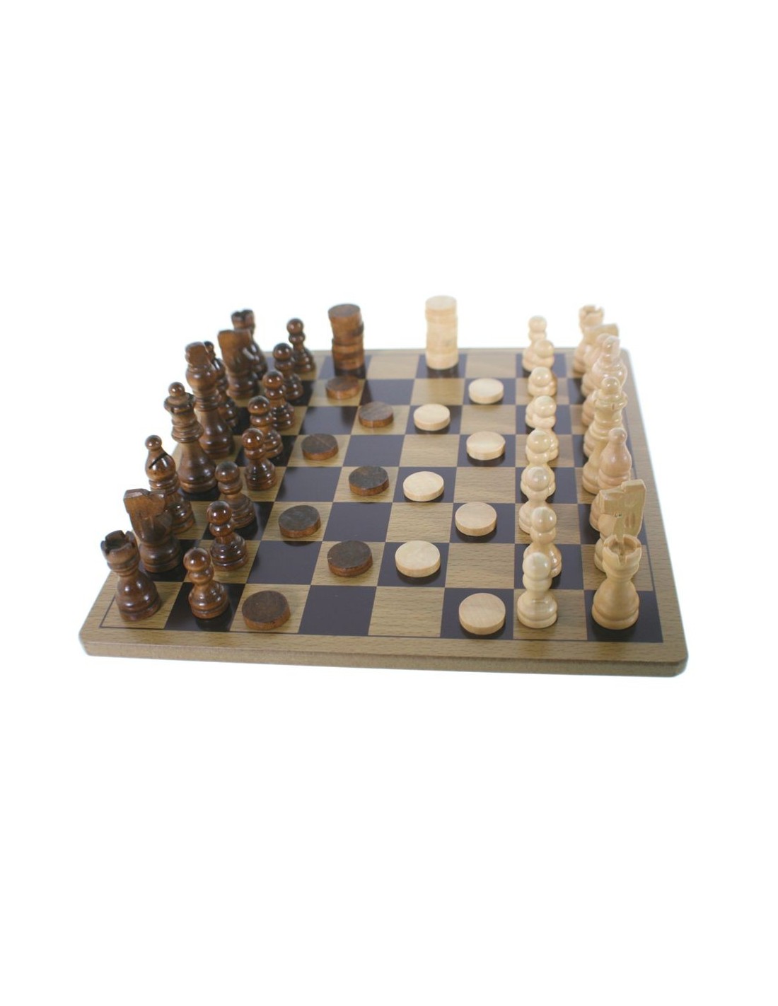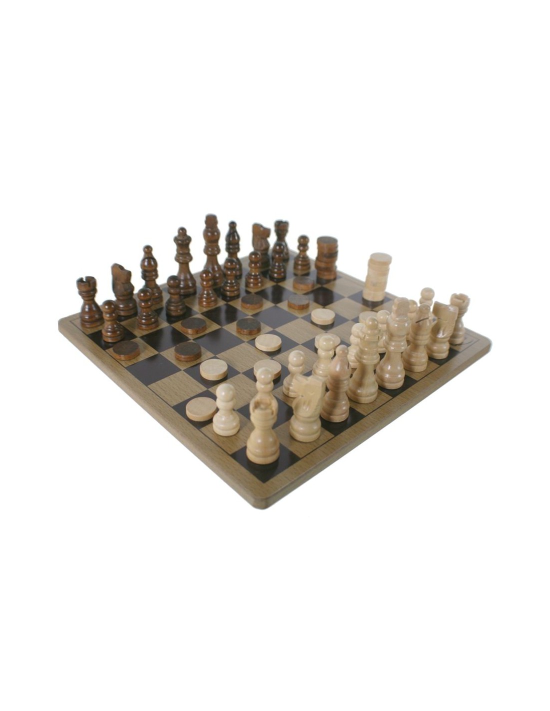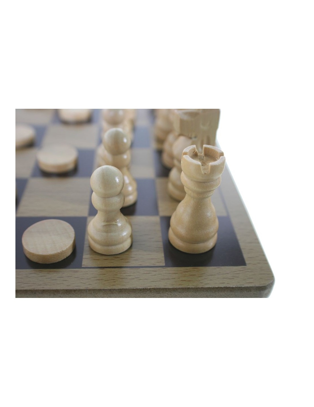 Jeu d'échecs et de dames portable avec pièces en bois.