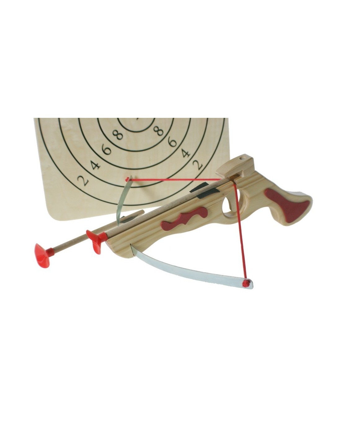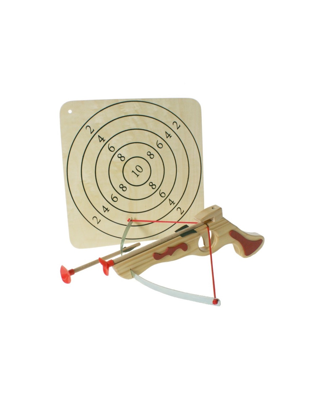 Arbalète en bois pour enfants avec cible et flèches à ventouse.