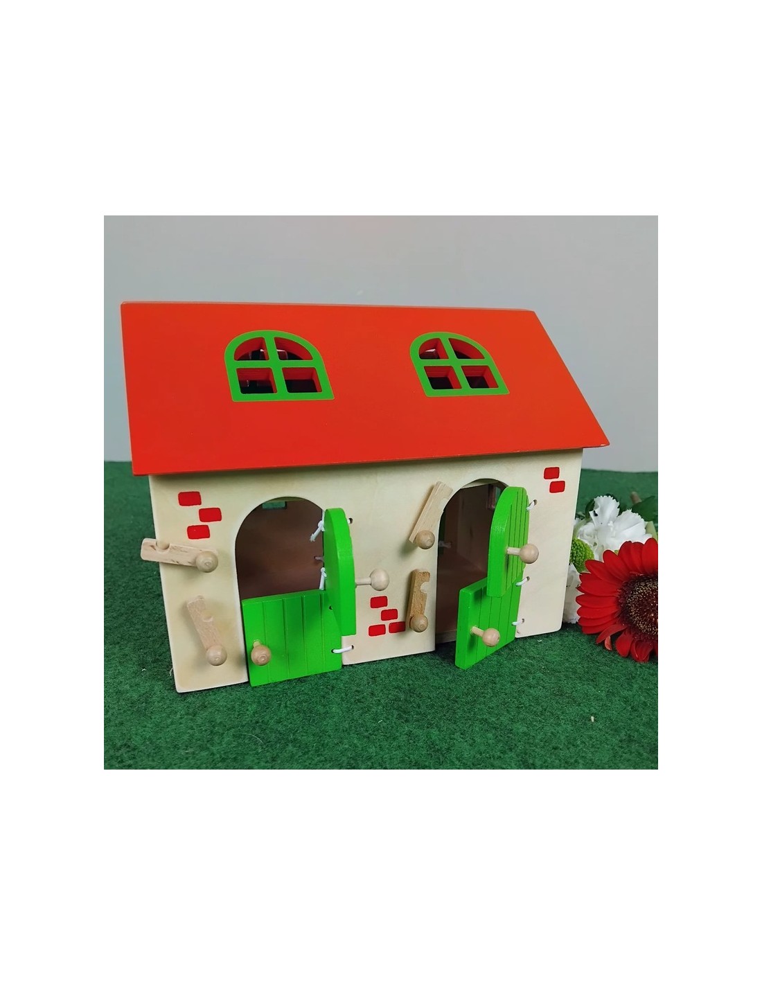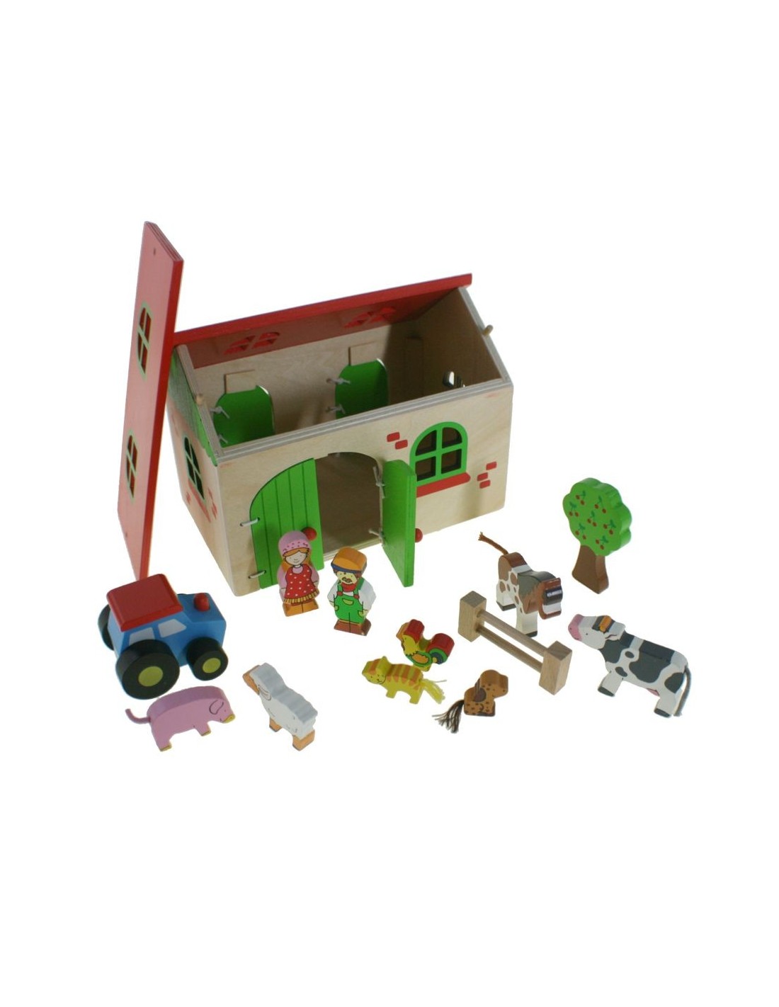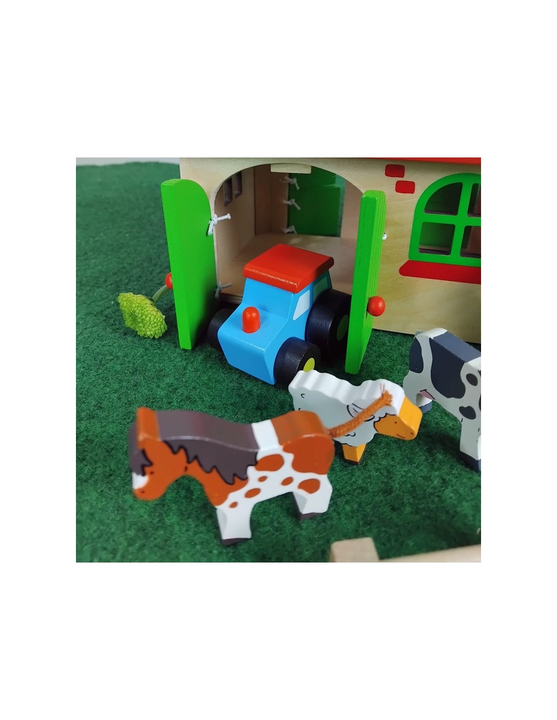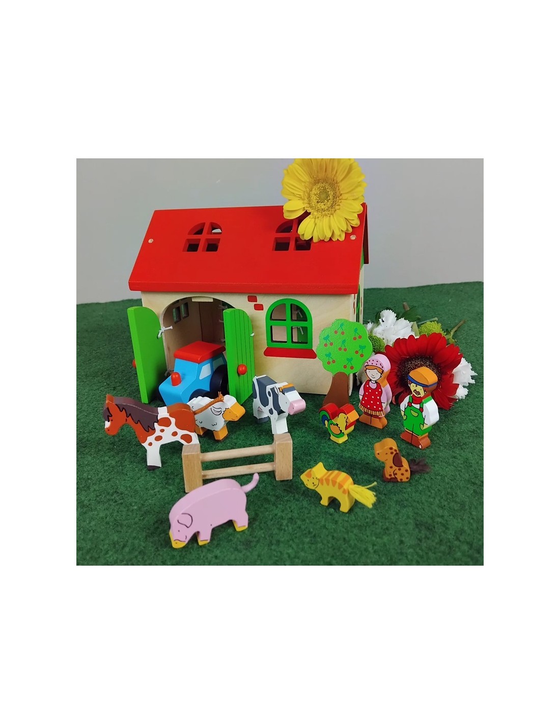 Une petite ferme en bois colorée, robuste et amovible qui invite les plus petits à créer des histoires imaginatives. Avec son toit amovible et ses 13 pièces incluses, elle est parfaite pour encourager le jeu libre et créatif.