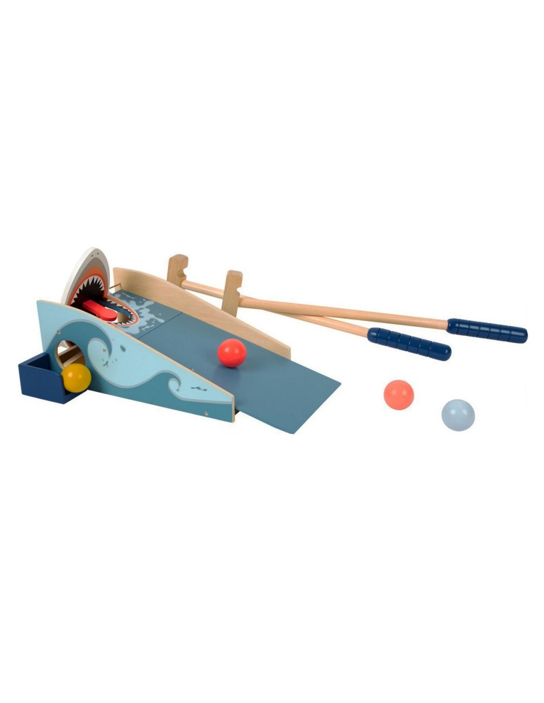 Avec ce mini golf en bois pour enfants, les plus petits pourront profiter d'une expérience amusante tout en développant leur coordination et leur précision. Son design en forme de requin et sa vague géante en font un défi passionnant.