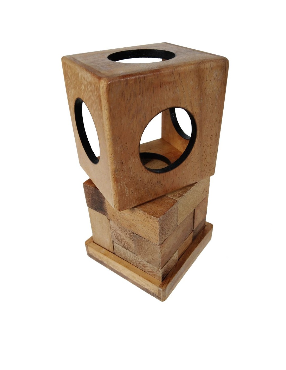 Jeu de puzzle cube en bois. Jeu de stratégie, de logique, d'entraînement et d'adresse : Dimensions : 7x7x7 cm.