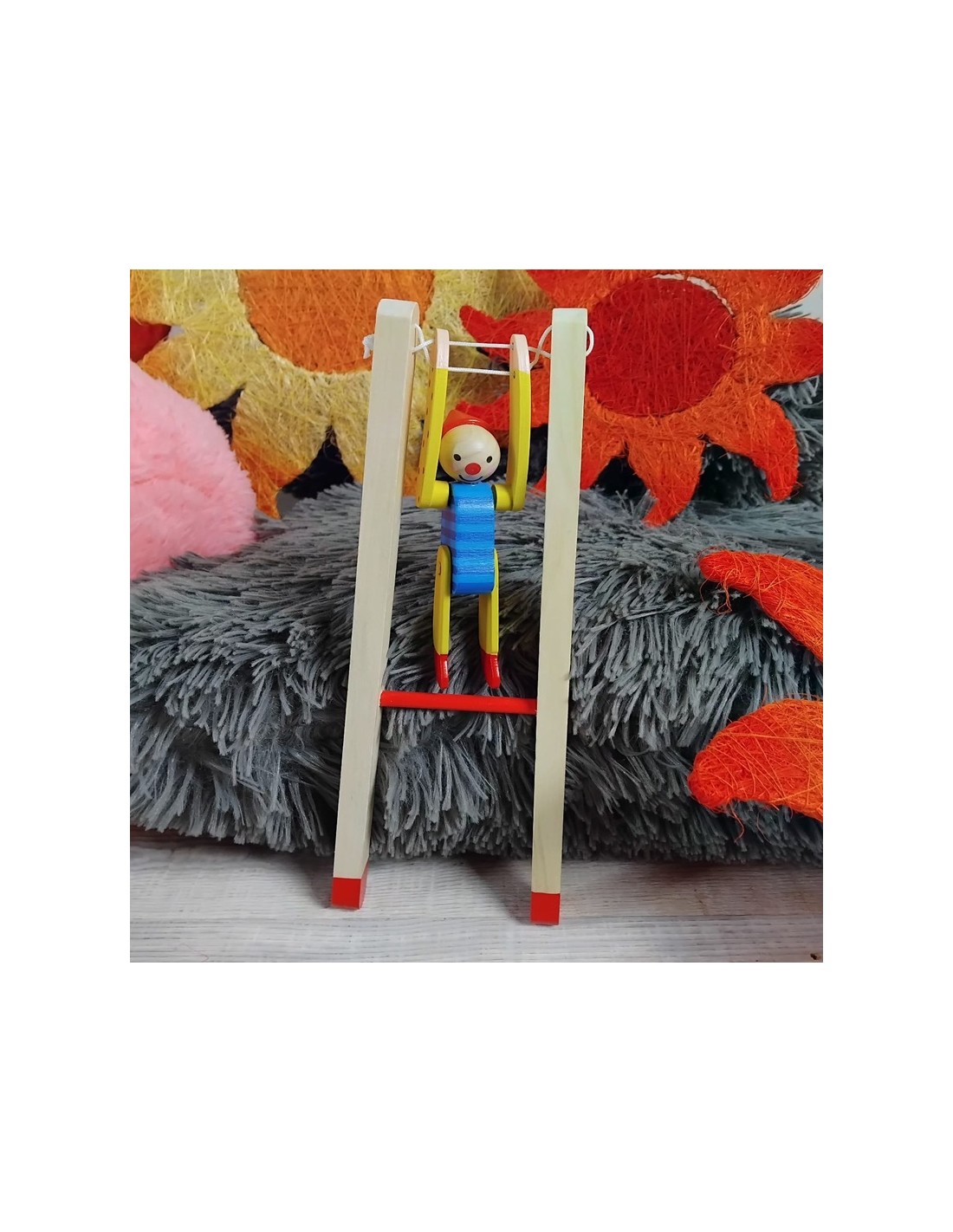 Funambule clown, un jouet traditionnel en bois qui développe les capacités manuelles des enfants. Avec son design coloré et amusant, il est parfait pour divertir et encourager la coordination.