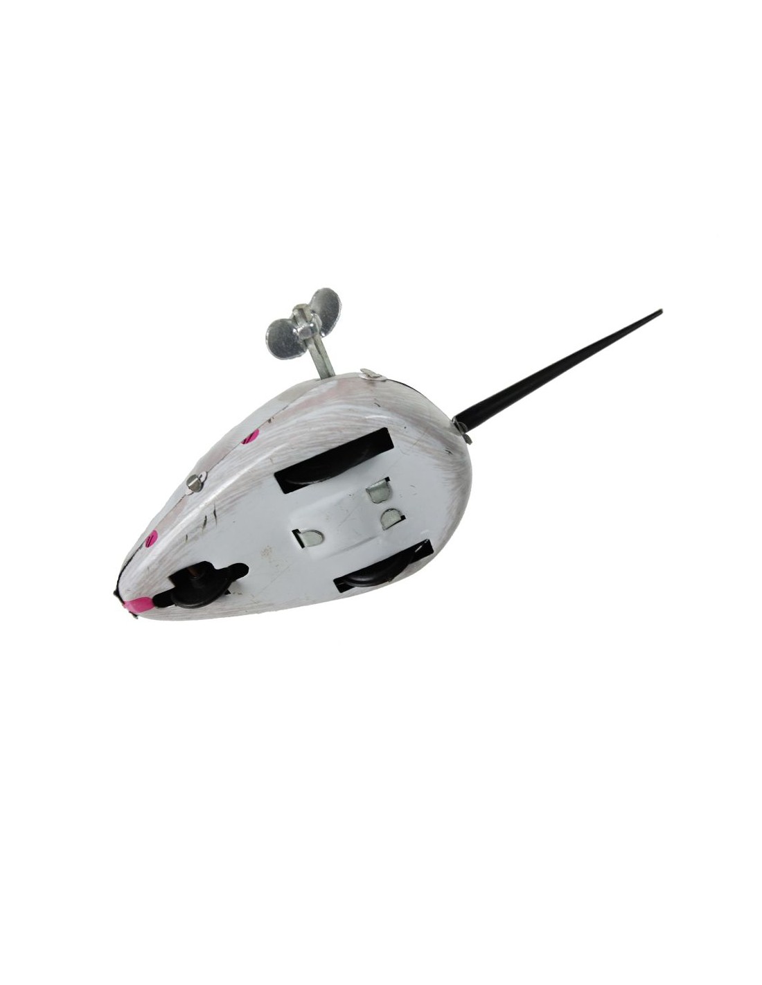 Lorsque vous la remontez, la souris prend vie en déplaçant ses roues. Ce mécanisme simple vous permet de profiter du mouvement du jouet sans avoir besoin de piles, comme cela se faisait autrefois.