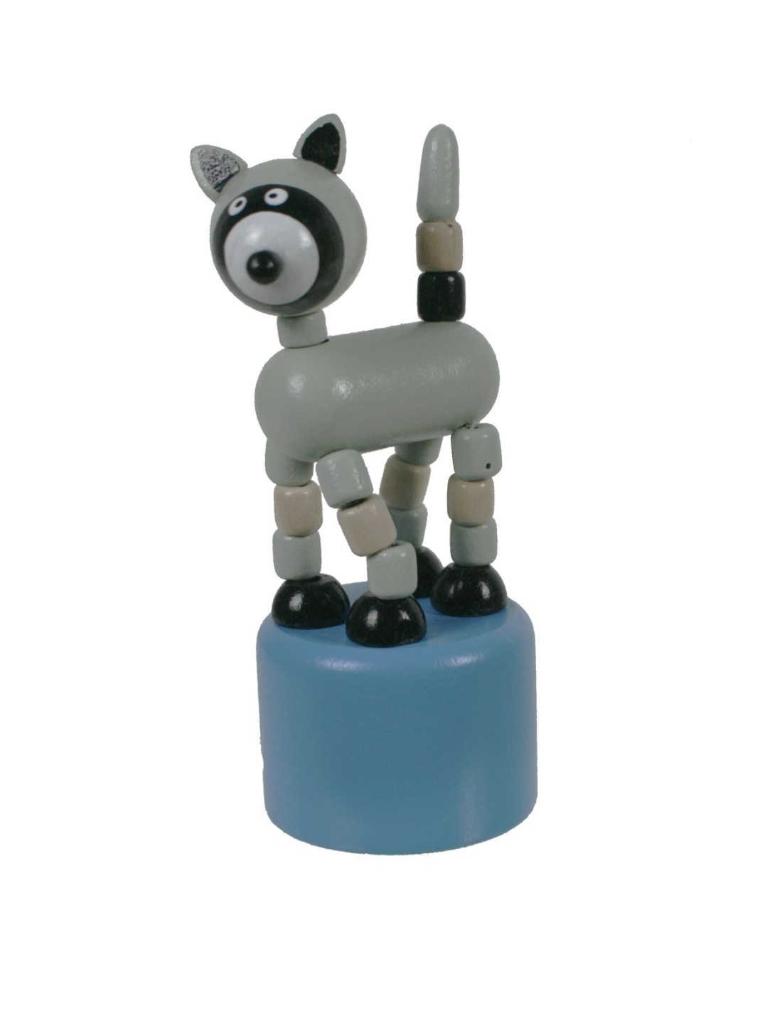 Jouet à presser traditionnel hyène en bois articulé avec base en bois jeu d'adresse pour enfants. Dimensions : 12xØ 4,4 cm.