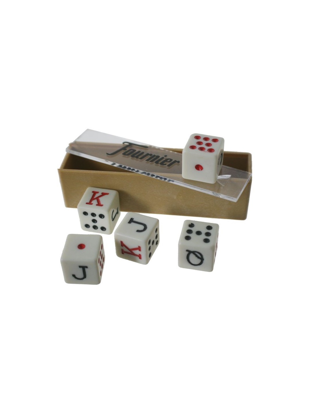 L'étui contient 5 dés de poker de haute qualité, parfaits pour organiser des parties rapides et passer des heures de plaisir en famille ou entre amis.