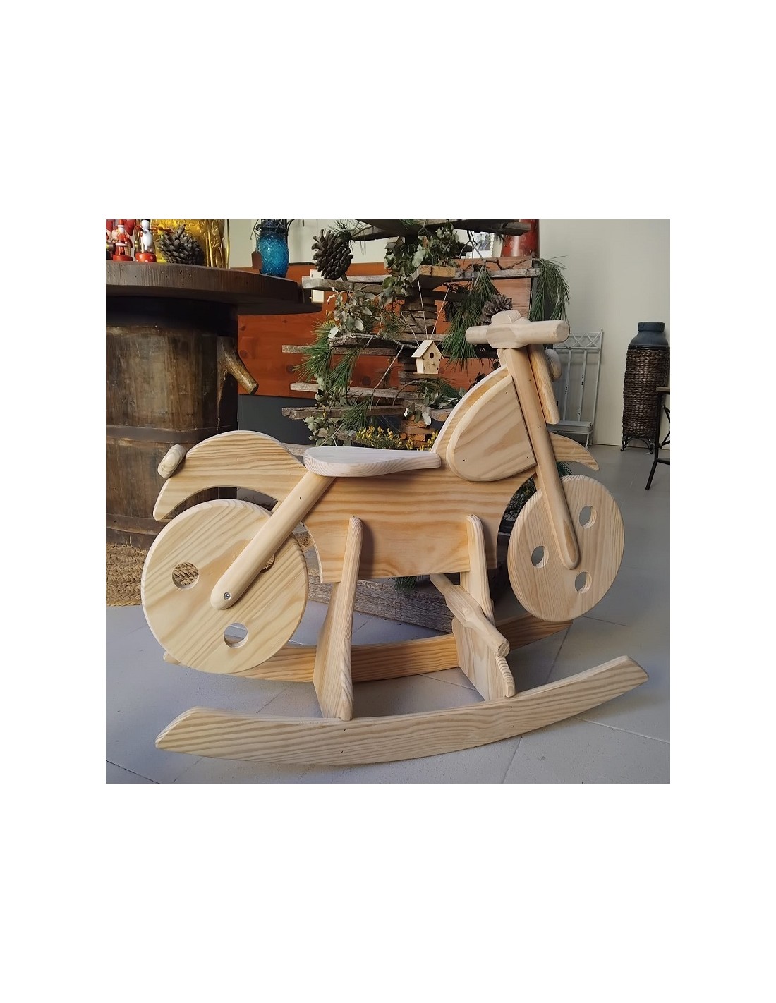 Moto à bascule en bois naturel - Jouet unique et amusant