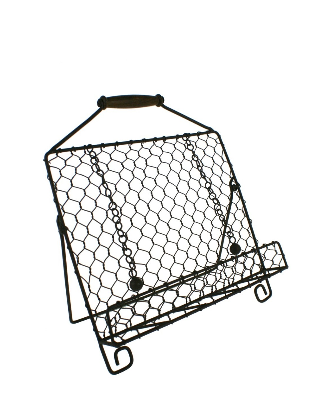 Pupitre en grille métallique et manche en bois pour le transport lecture livre lutrin décoration.Mesures: 33x29x17 cm.