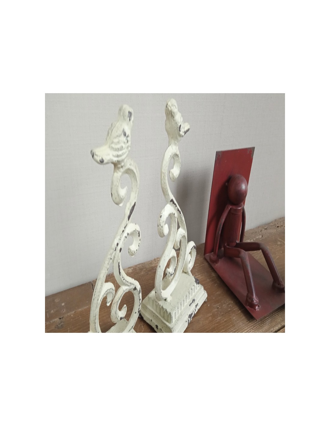 Ensemble de deux livres de soutien en fonte finition crème vieillie et construction très renforcée pour décorer votre bibliothèque.