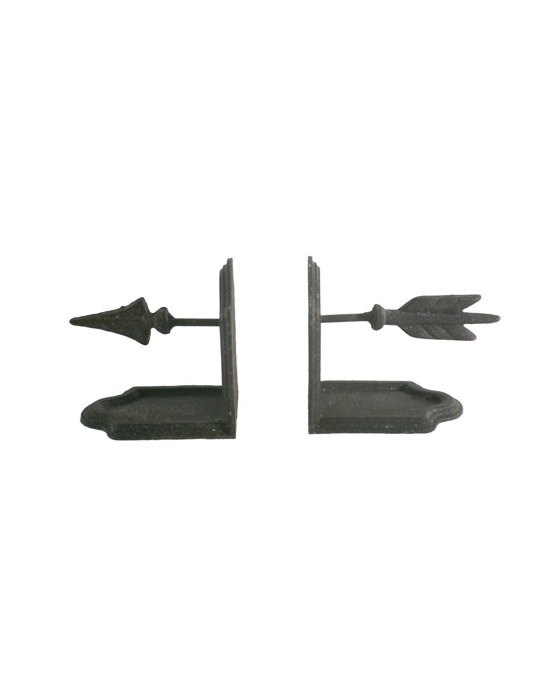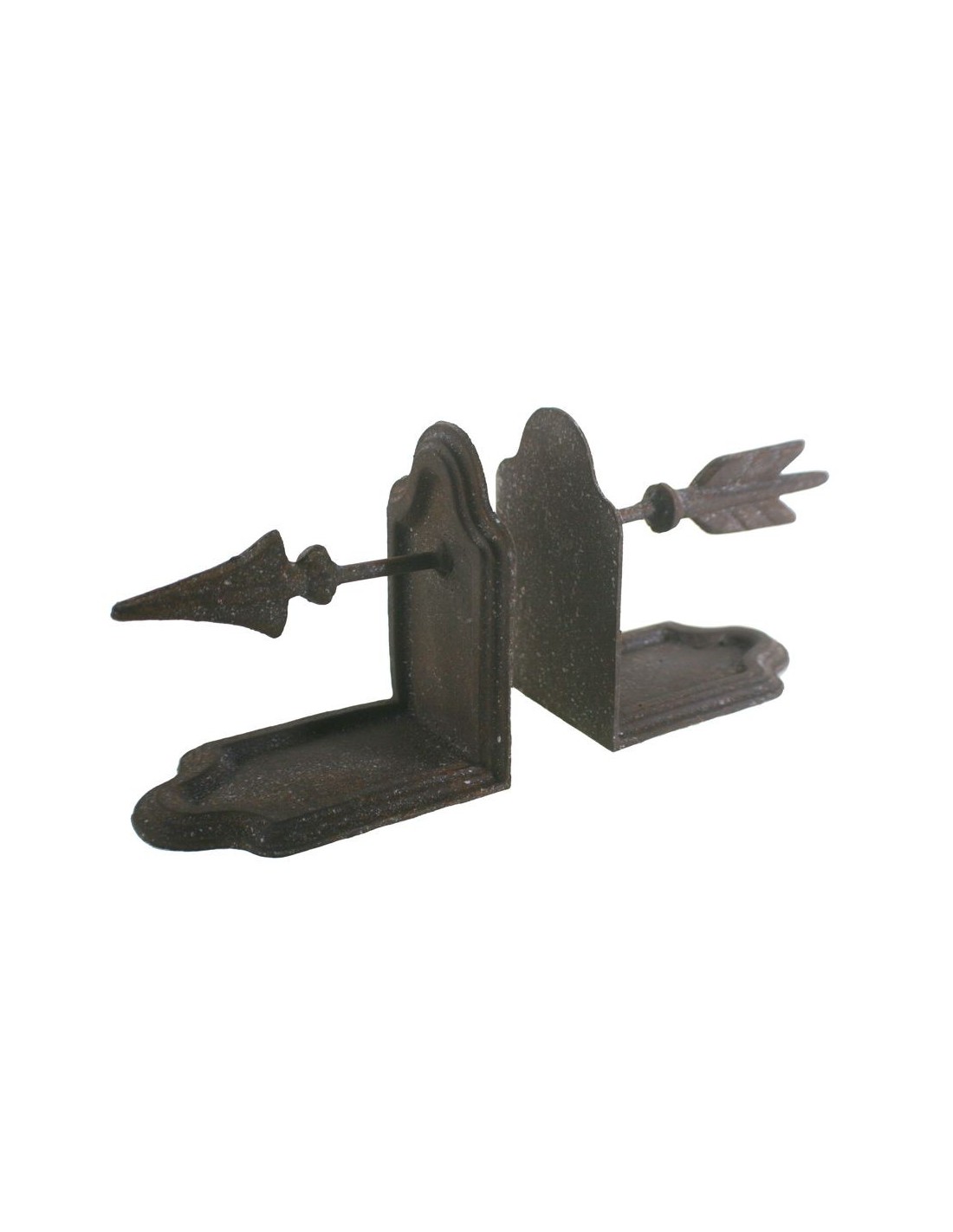 Jeu Deux serre-livres en fonte avec une flèche de couleur rouille. Mesures: 12x12x8 cm.