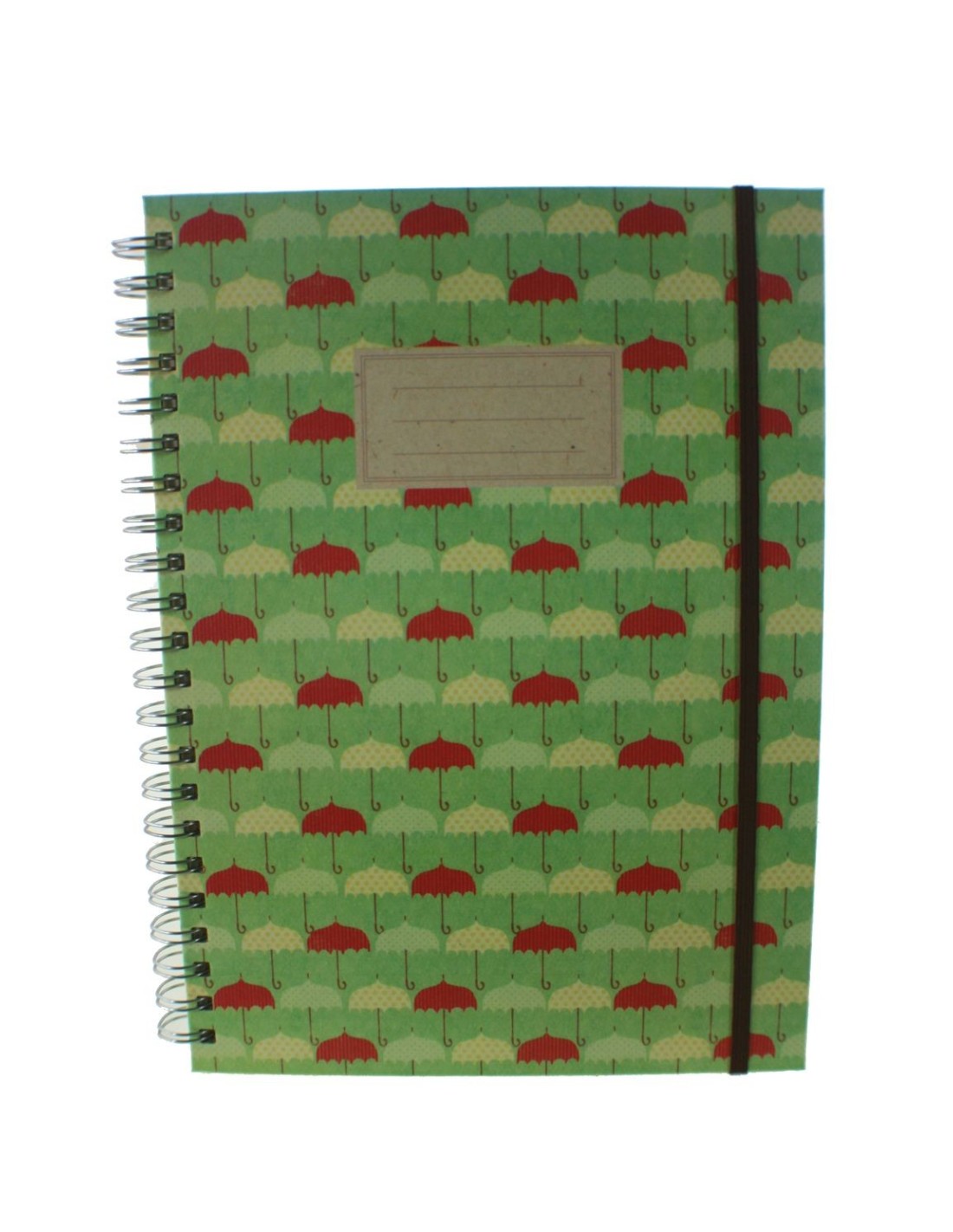 Carnet à anneaux verts avec motif parapluie, format A4.
