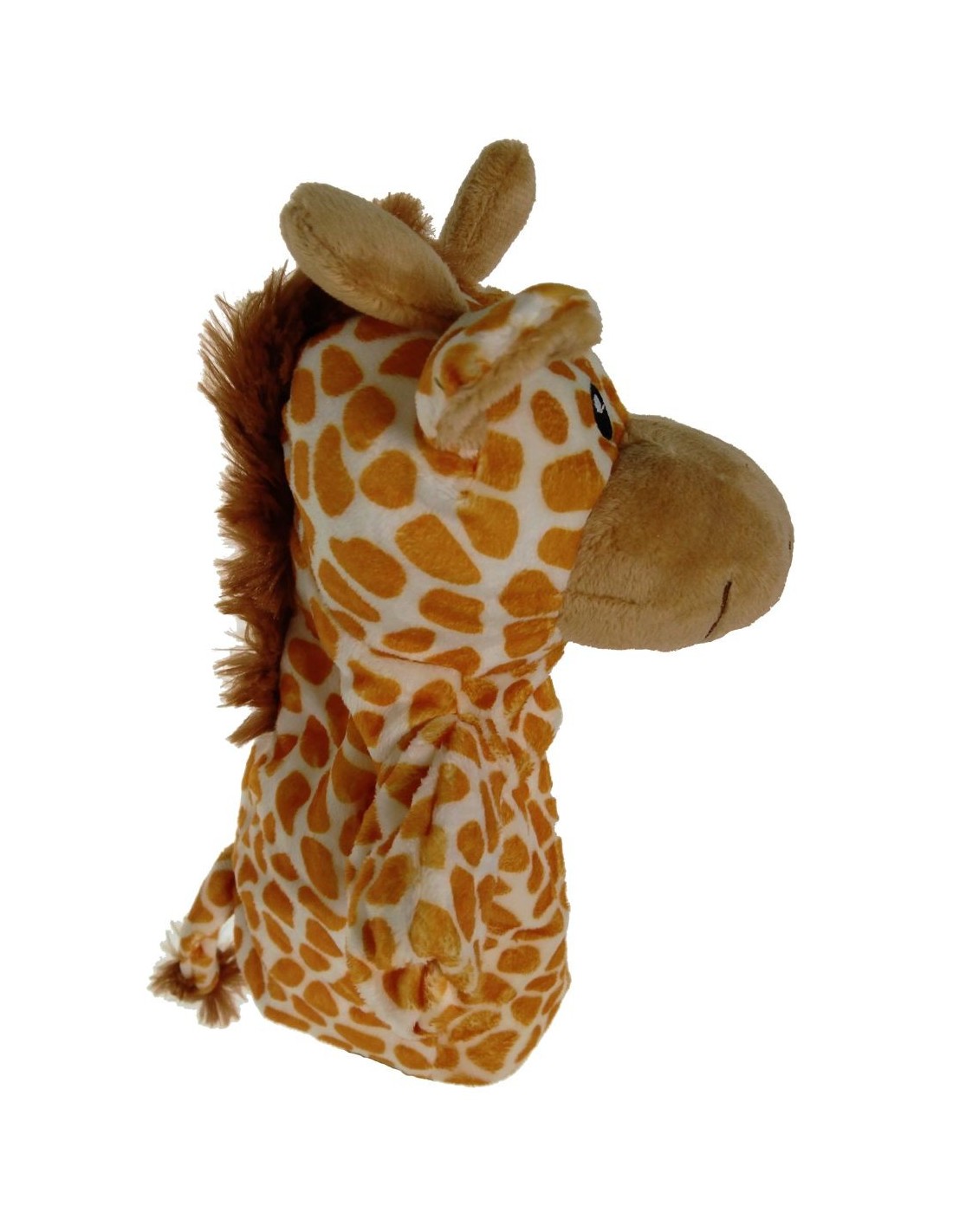 Bonjour, je suis une marionnette à gaine en forme de girafe et au toucher très doux. Je sers pour jouer et aussi pour me blottir au lit. Je suis sûr que nous serons de bons amis.