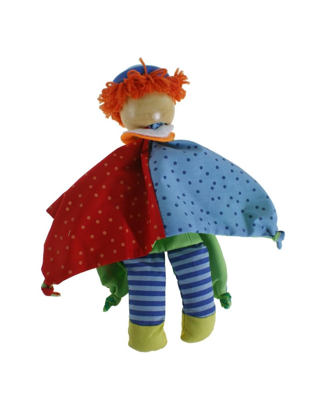 Le rideau se lève! Le théâtre de marionnettes peut commencer et divertir les plus petits. Cette marionnette colorée est un clown. La tête est en bois et grâce à la bonne position des doigts, vous pouvez bouger les bras pour donner vie au clown.