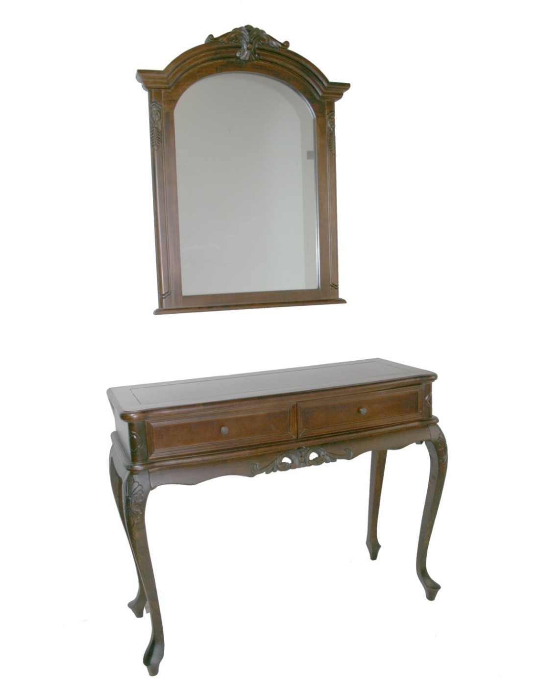 Charme classique pour votre entrée : Console avec miroir en bois sculpté.