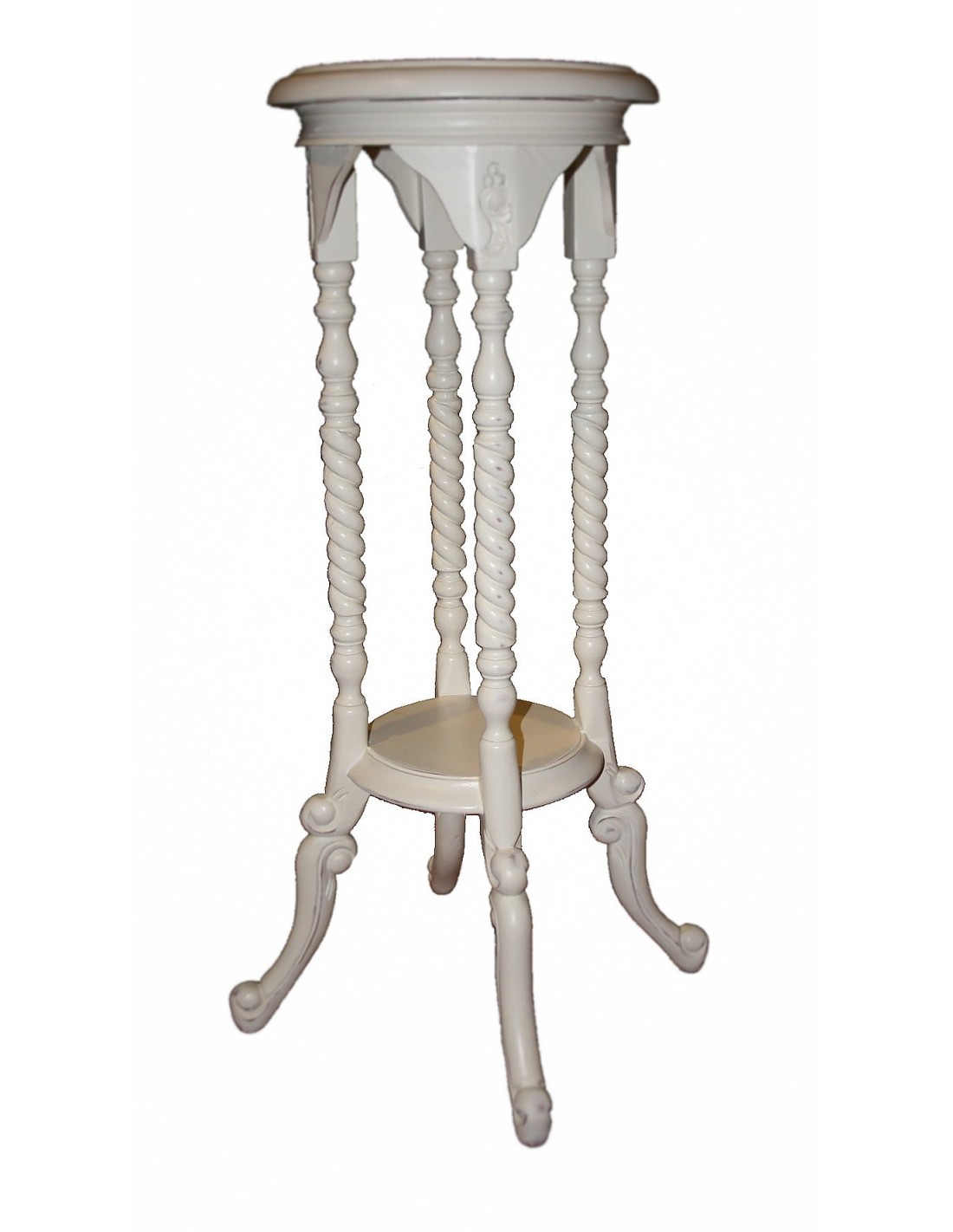 Guéridon en bois de haute qualité, sculpté à la main, avec une finition blanc antique. Idéal pour décorer avec style les coins du salon ou de l'entrée.