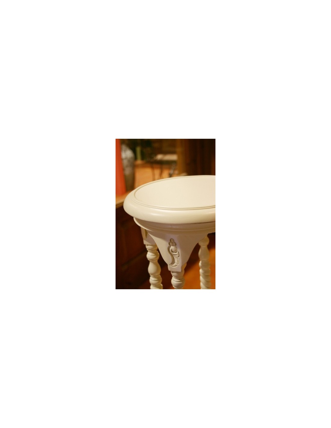 Guéridon en bois blanc antique sculpté, style rustique et vintage. Dimensions : 78 x 43 x 43 cm.
