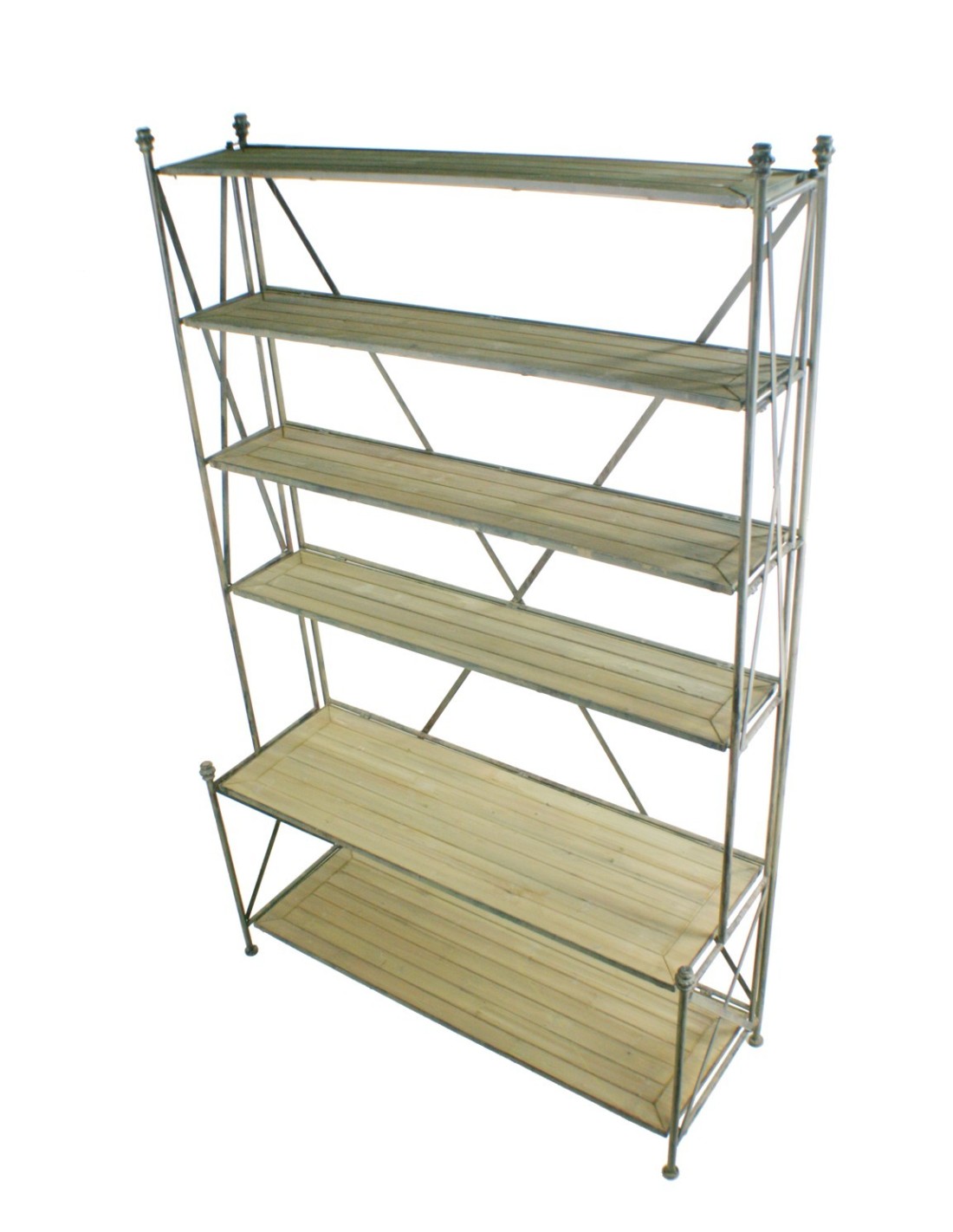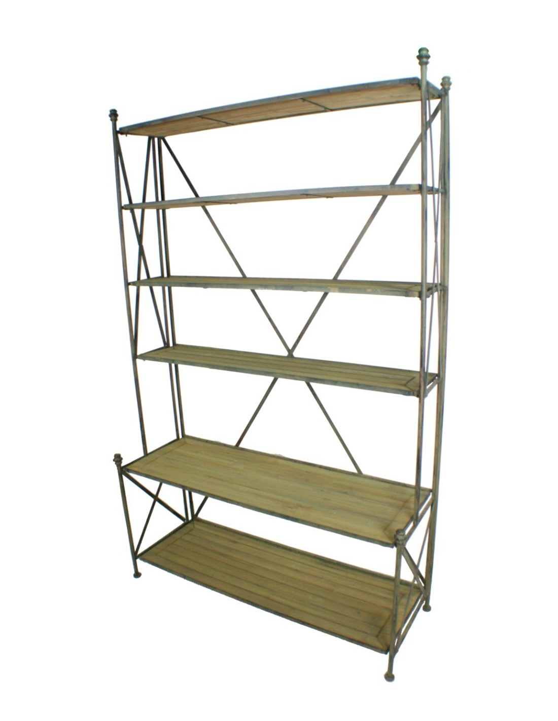 Bibliothèque à six étagères avec structure en fer et bois naturel. Avec un surplomb plus bas pour une meilleure organisation et une touche rustique-industrielle très décorative.