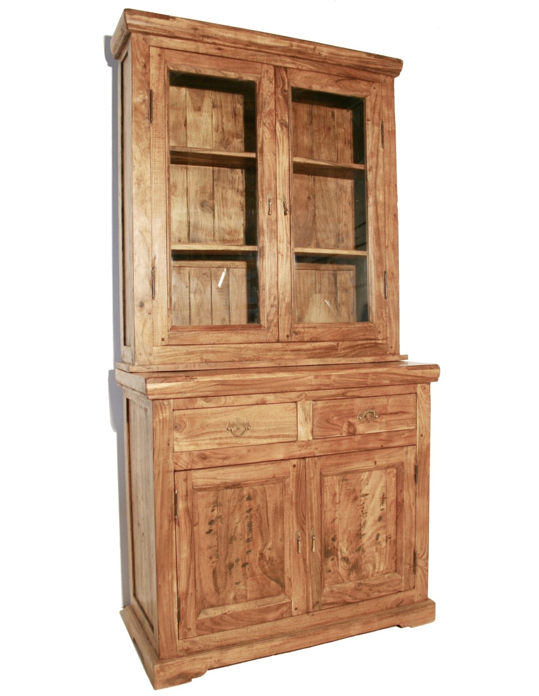 Vitrine en acacia massif : deux parties, style rustique et beaucoup de charme.