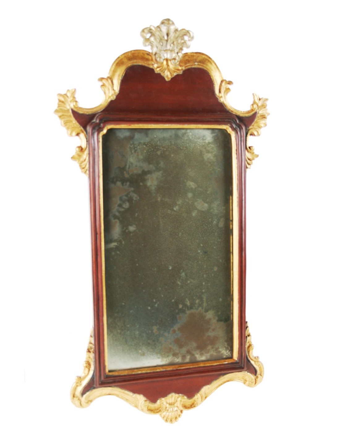 CHRISTOPHER GUY collection Miroir de bois massif sculpté à la main d'or vieilli et marbré verre coloré.