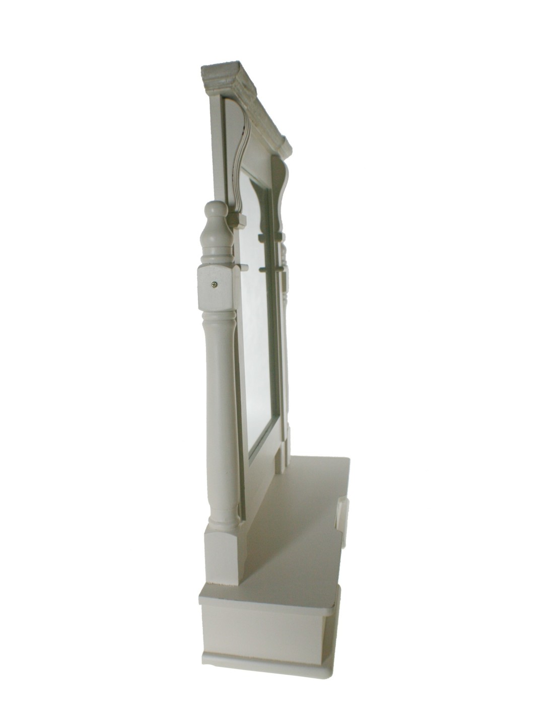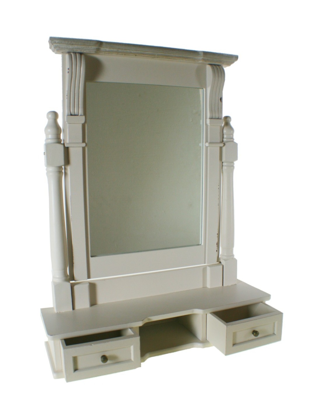Meubles miroir en bois pour coiffeuse ou table avec tiroirs blancs de style vintage. Dimensions : 67x52x15 cm.