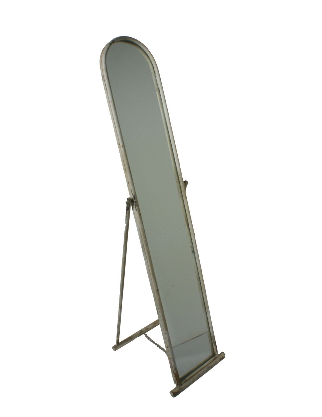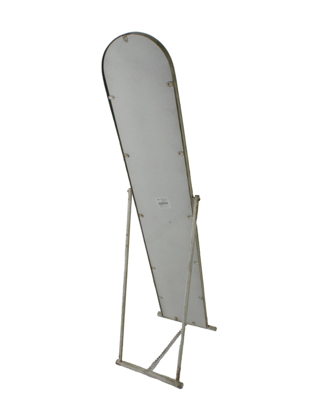 Miroir sur pied rond avec cadre en métal vieilli couleur crème décoration de maison.Dimensions: 142x34x6 cm.