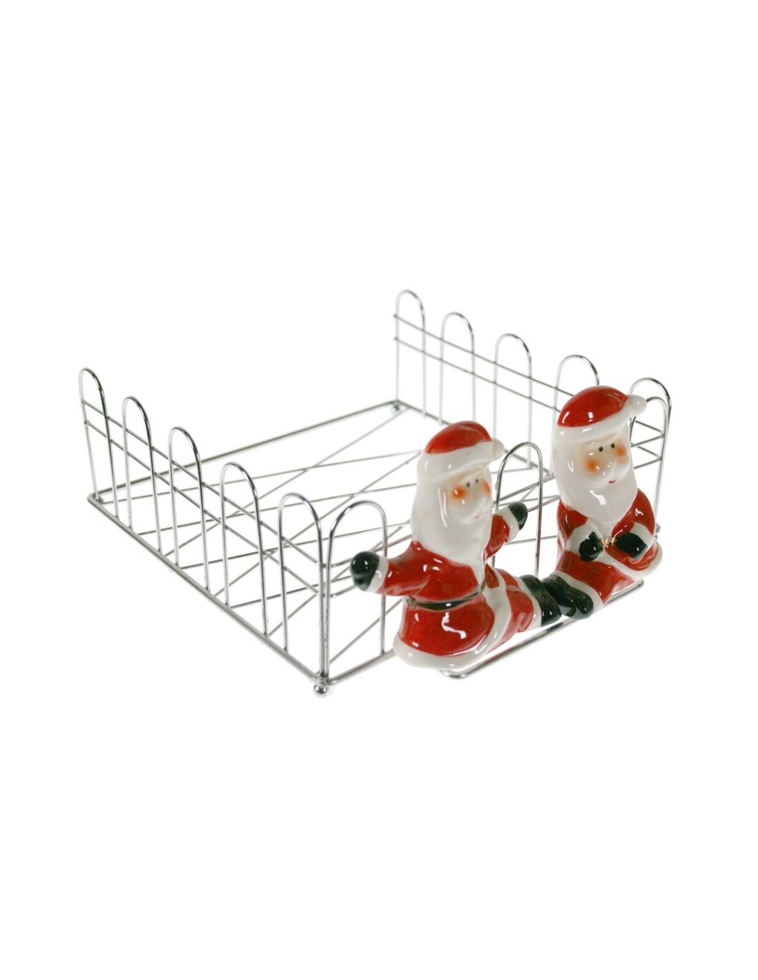 Distributeur individuel de serviettes en métal avec des figures décoratives du Père Noël, de style classique, qui maintiendra vos serviettes en place. Porte-serviettes de table original et simple qui décorera la pièce de votre cuisine, salle à manger et terrasse et faisant de ce porte-serviettes le complément parfait pour les vacances de Noël.