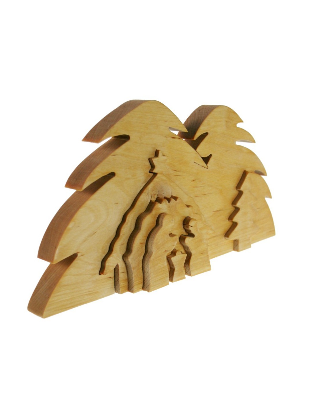 Crèche sculptée en 3D en bois naturel Décoration de Noël de style nordique. Dimensions : 14x27x3cm.