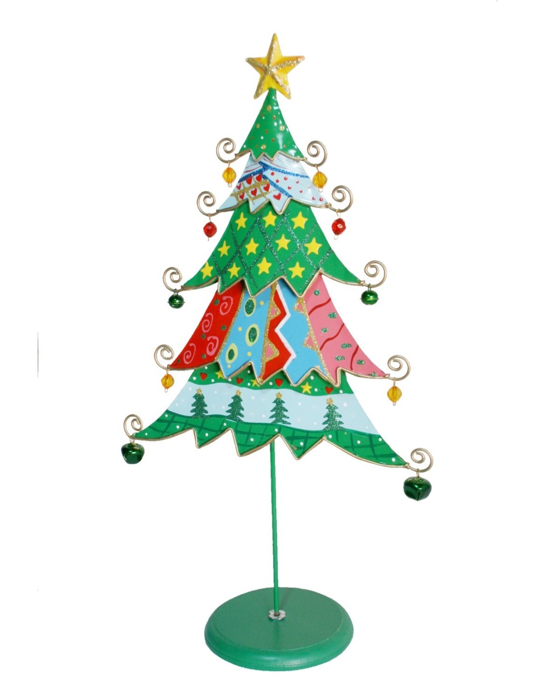 Petit sapin de table pour la décoration de Noël, Un sapin en fer original en multicolore très original avec garniture en boules et étoile de la Nativité inclus. L'étoile est l'élément le plus décoratif et le plus important de l'arbre. Un sapin très décoratif pour l'entrée du hall ou comme table d'appoint.