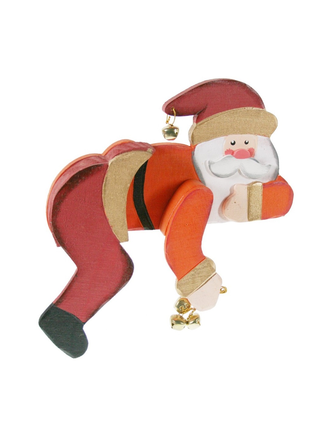 Décoration en bois du Père Noël à placer dans l'encadrement de la porte. Une décoration d'avant Noël très élégante et gaie.