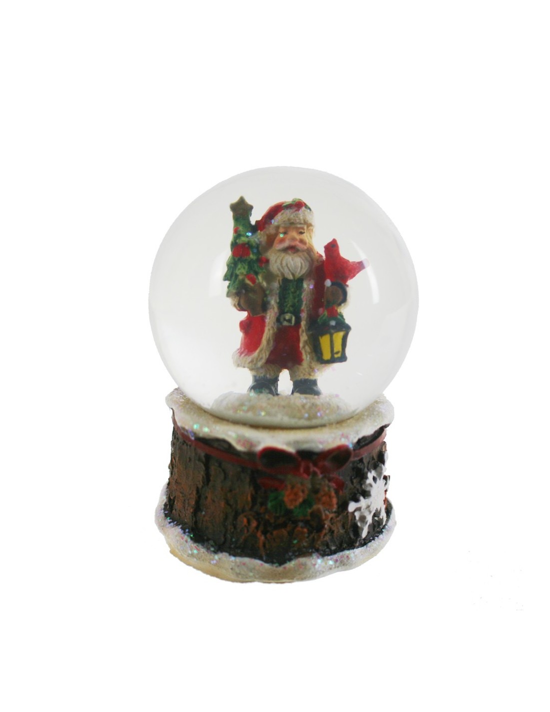 Boule à neige avec le Père Noël avec boule d'eau de sapin avec le Père Noël sur la base. Dimensions : 6, 5x Ø4,5 cm.