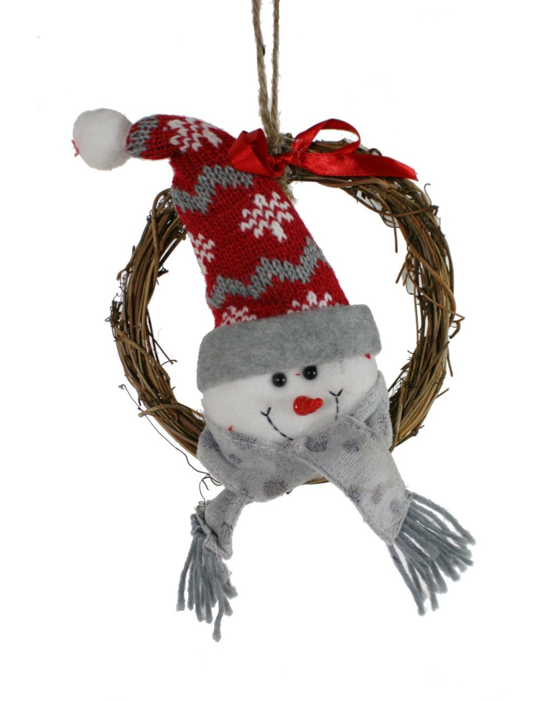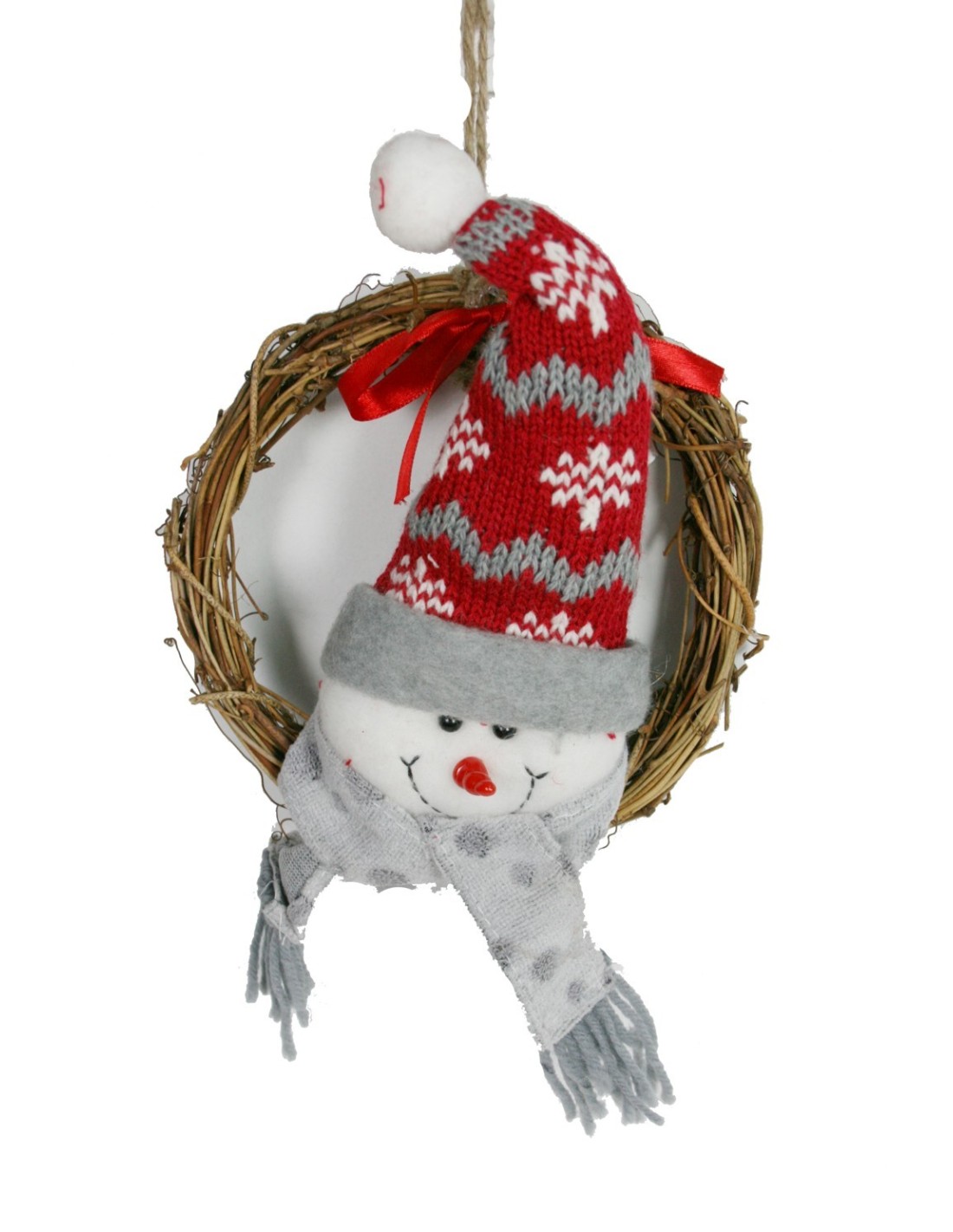 Petite couronne de Noël en rotin avec bonhomme de neige pour ornement de Noël de porte de maison. Dimensions : 18x16x5cm.