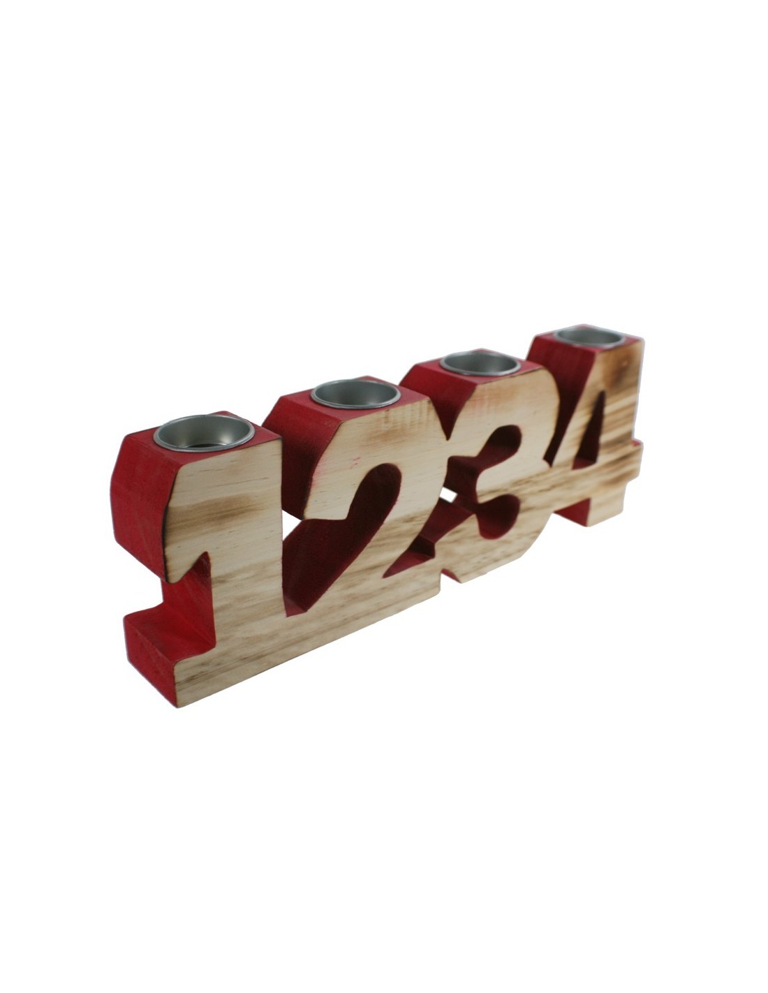 Un, deux, trois, quatre... et le temps de l'Avent est à nos portes. Ce bougeoir en bois est composé de quatre chiffres sciés ensemble et en partie peints en rouge. Ainsi, il offre un éclat agréable. Laissez la magie de ces vacances entrer chez vous avec les bougies.