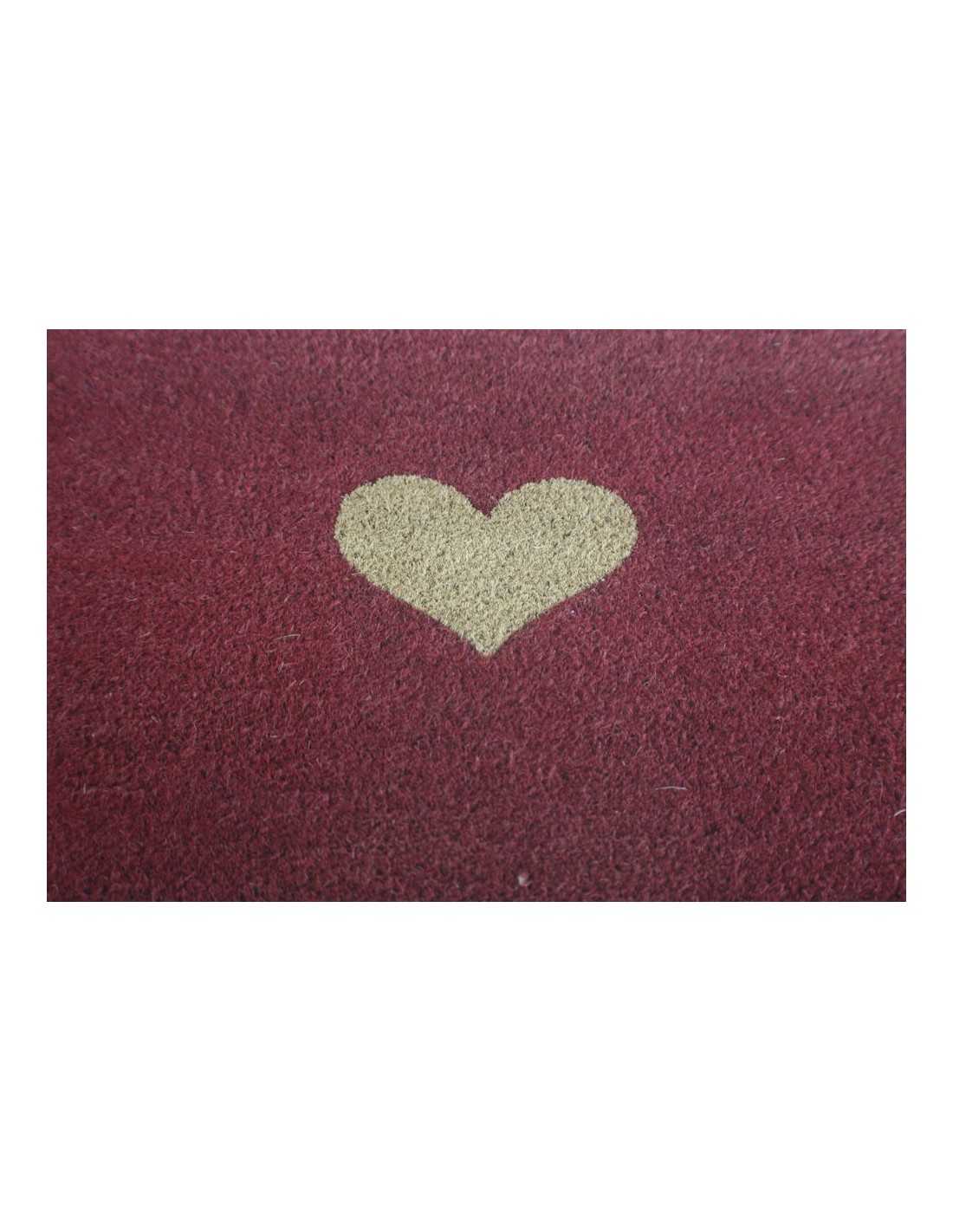 Grand paillasson rectangulaire couleur grenat design coeur en fibre de coco pour entrée maison jardin.Mesures: 75x45 cm.